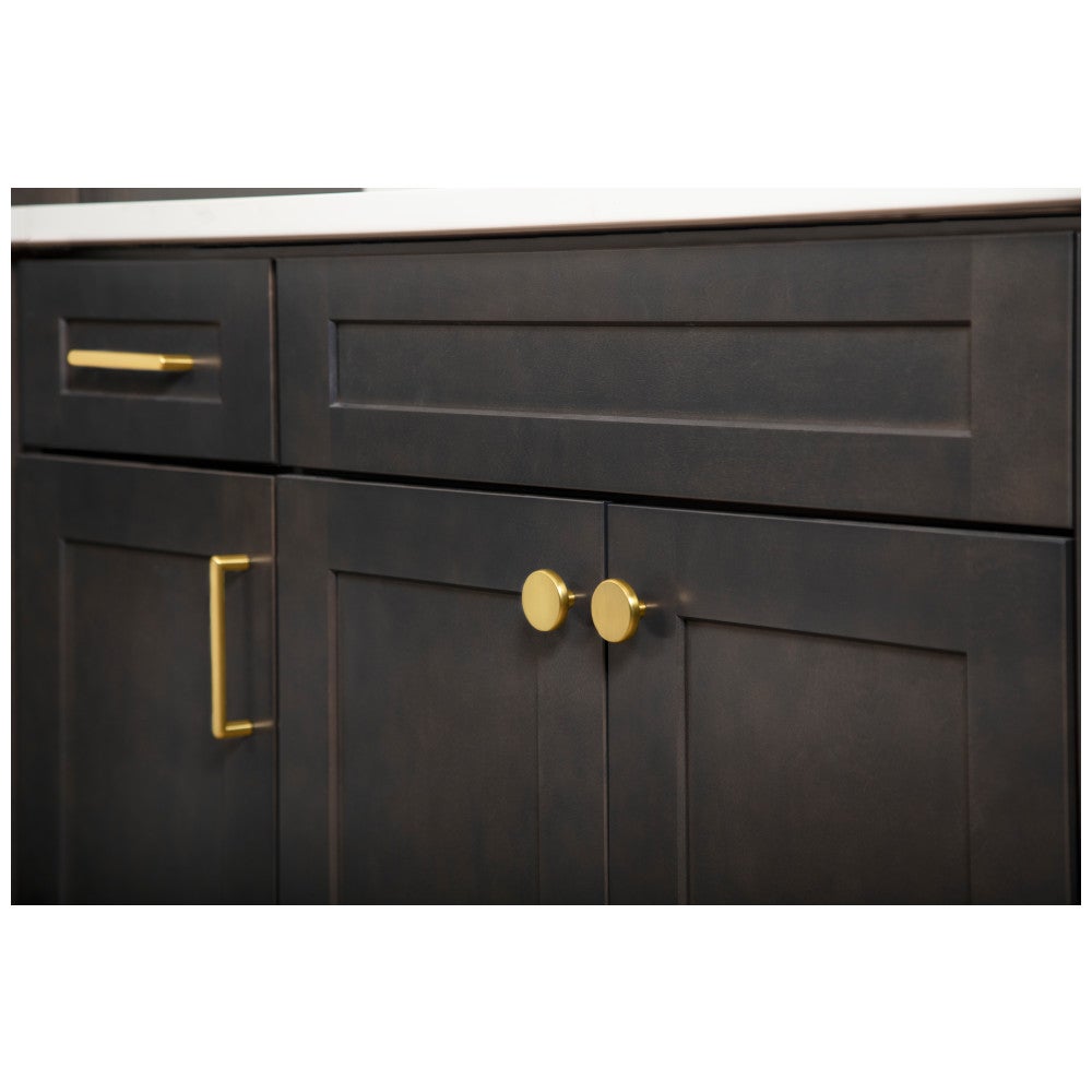 Gibson, with its clean casual lines, brings an effortless, harmonic vibe to your contemporary or transitional space. A coordinating closed-end cabinet bar pull in four center-to-center options pairs melodiously with this smooth and simplistic 1-1/4" diameter Satin Nickel cabinet knob. This collection from Elements is a crowd-pleaser. Available in five additional and trendy finishes - Brushed Gold, Brushed Pewter, Matte Black, Polished Chrome, and Satin Bronze. Each item is individually wrapped to protect the item from damage. Attachment hardware is included.