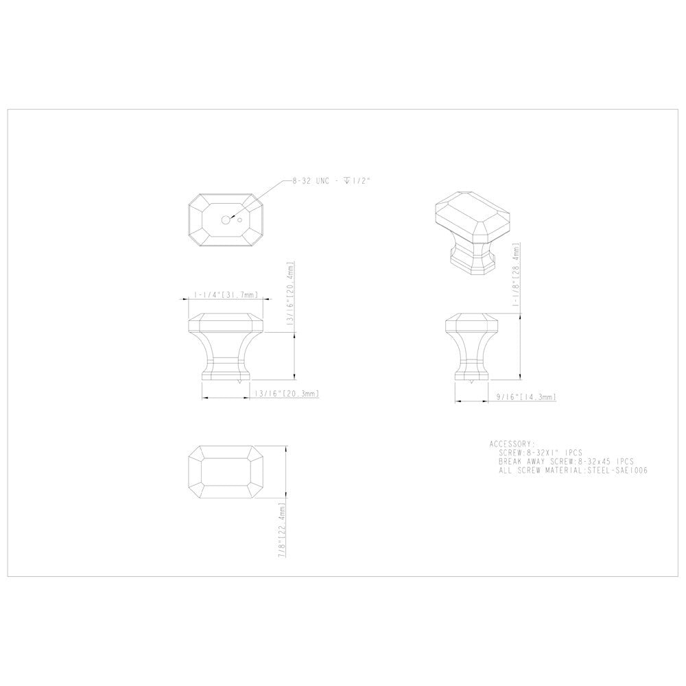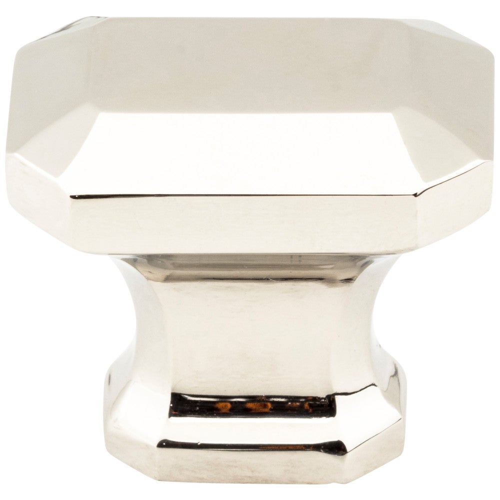 With its soft square faceted design, resembling an emerald-cut jewel, Ella's dazzling personality adds brilliance to any kitchen. This 1-1/4" overall length Satin Nickel Jeffrey Alexander cabinet knob coordinates with a wide chamfer pull with strap detail. The pull is available in three standard pull lengths and an appliance handle. Available in five luxurious finishes, this collection is the epitome of "jewelry for kitchens." Each item is individually wrapped to protect the item from damage. Attachment hardware is included.