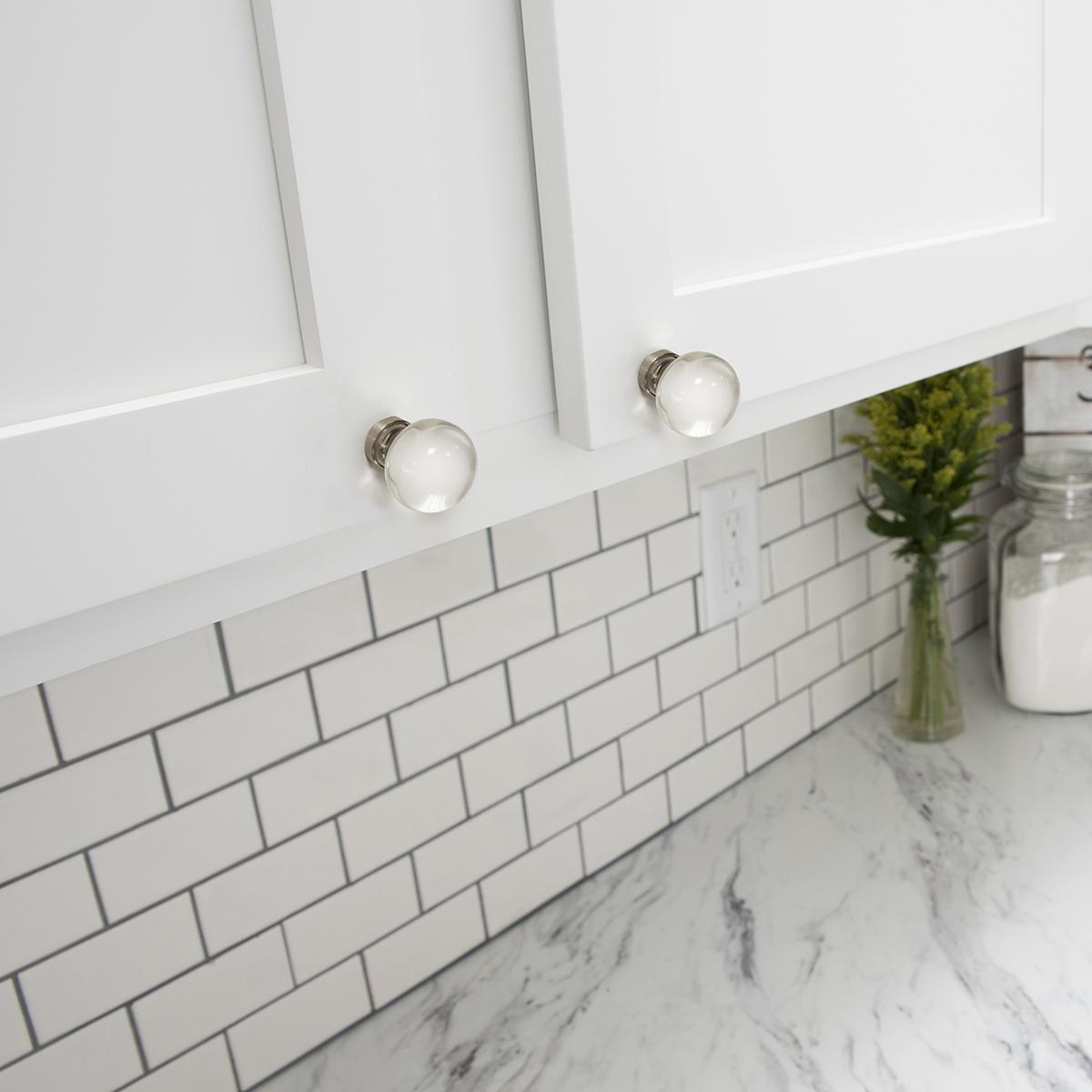 The Satin Nickel finish coordinates with most silver finishes including Stainless Steel. The warm silver tone features lengthwise brushing and a glossy protective coating that is softly reflective. The glass accent is clear and reflective.