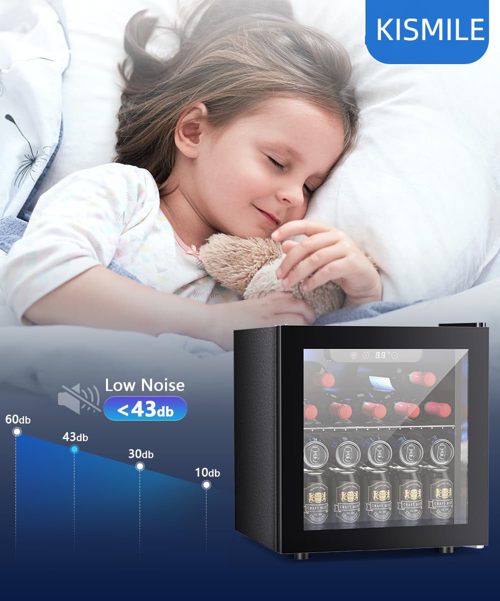 Powerful Cooling:Our drinks cooler built-in R600a Compressor that Energy saving operation and fast cooling. The Noise Level of the Small Fridge below 43dB, bring Quiet environment for work and rest.