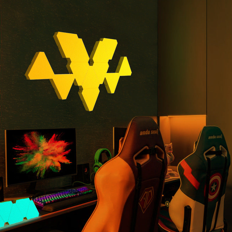 [Smart APP & Voice Control]: Led triangle wall lights can be controlled by Alexa, Google Assistant, Stream Deck,Razer synapse 3. DIY lighting effect, light color, color-changing speed, available in Cololight APP. Hands-free turning on/off, daily scheduling, changing colors and setting brightness anywhere anytime via a smart device.