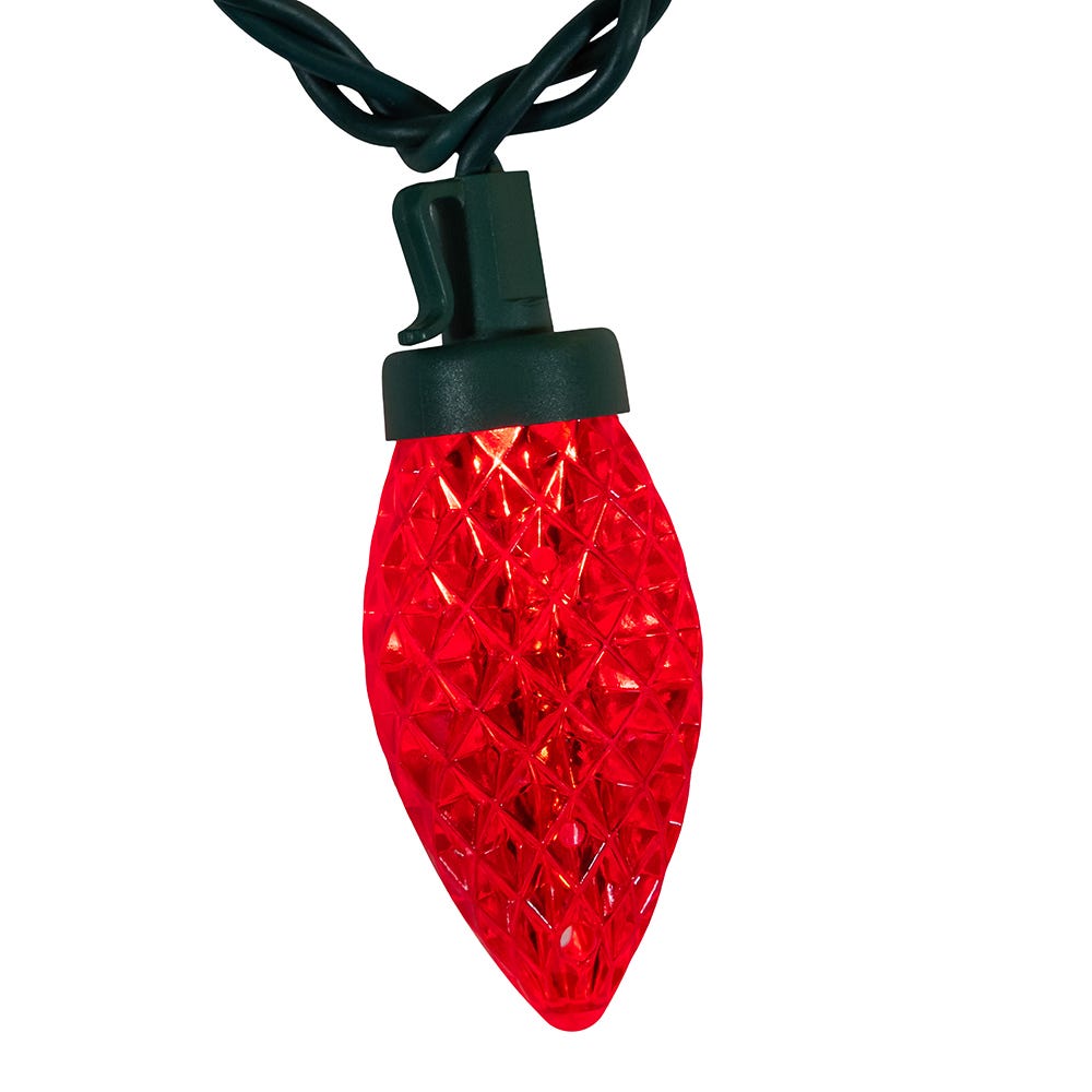 - 100 multicolor (red, yellow, blue, green, purple) faceted C9 LED lights