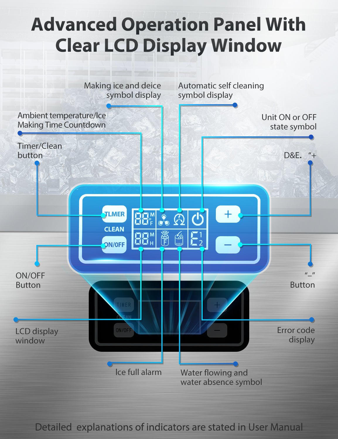 Easy to Use: With an easy-to-use control panel, you can check it out all the time to know the status of the ice-making.
