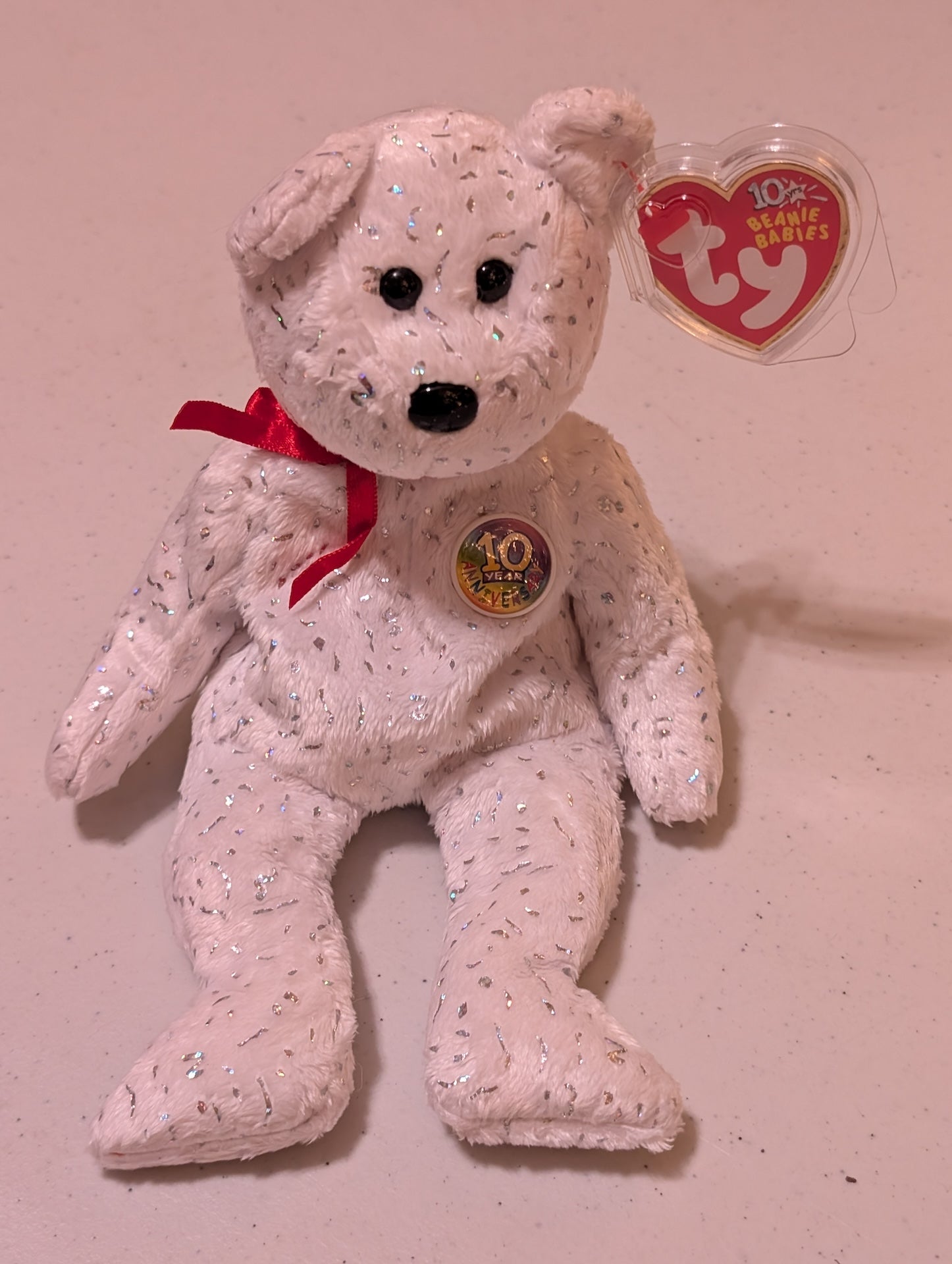 10th Anniversary Diamond the Bear - Ty Beanie Baby (White, 2003, Plush Toy, Stuffed Animal, MWMT, Vintage, Retired)