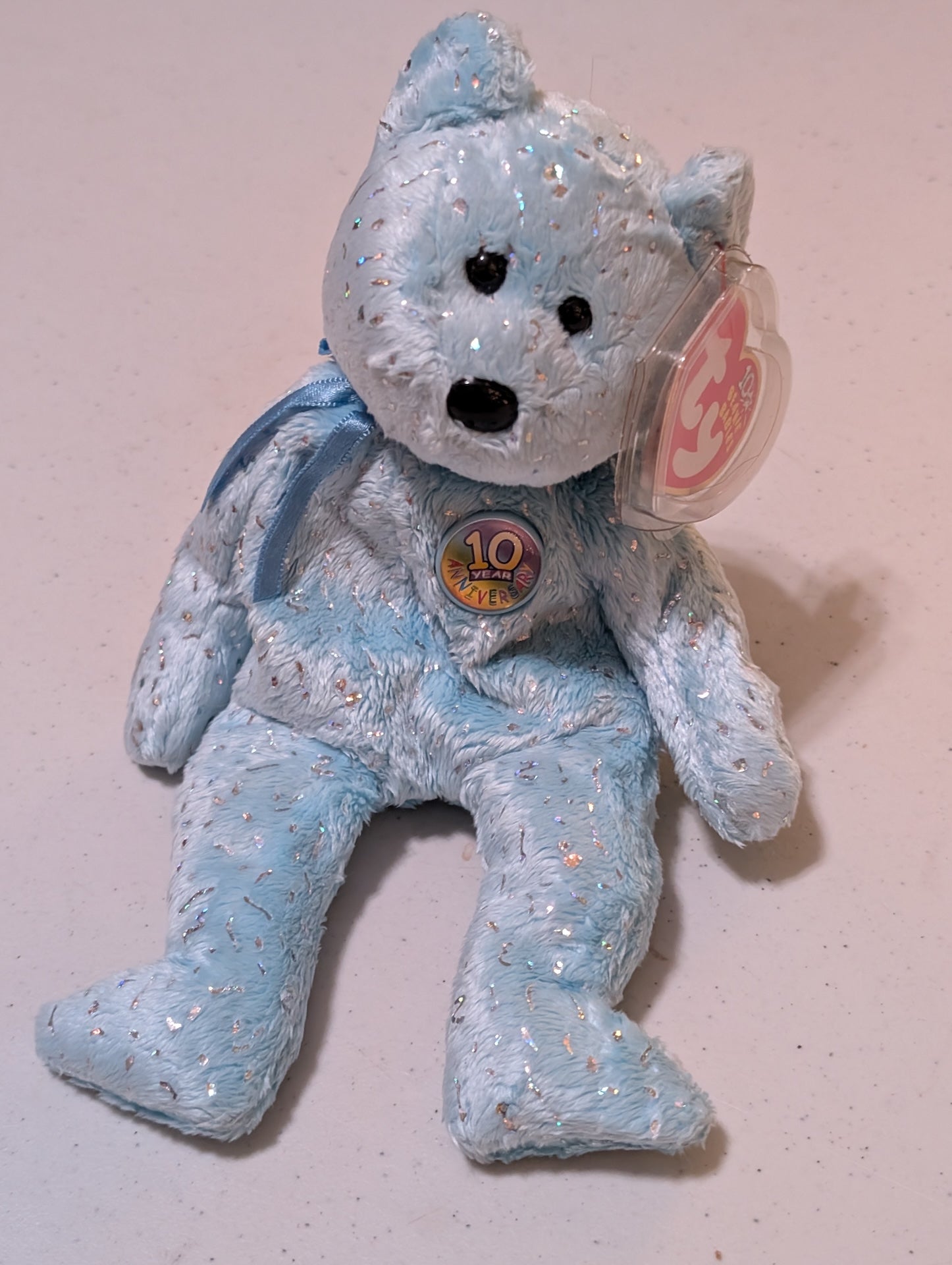 10th Anniversary Sapphire the Bear - Ty Beanie Baby (Light Blue, 2003, Plush Toy, Stuffed Animal, MWMT, Vintage, Retired)