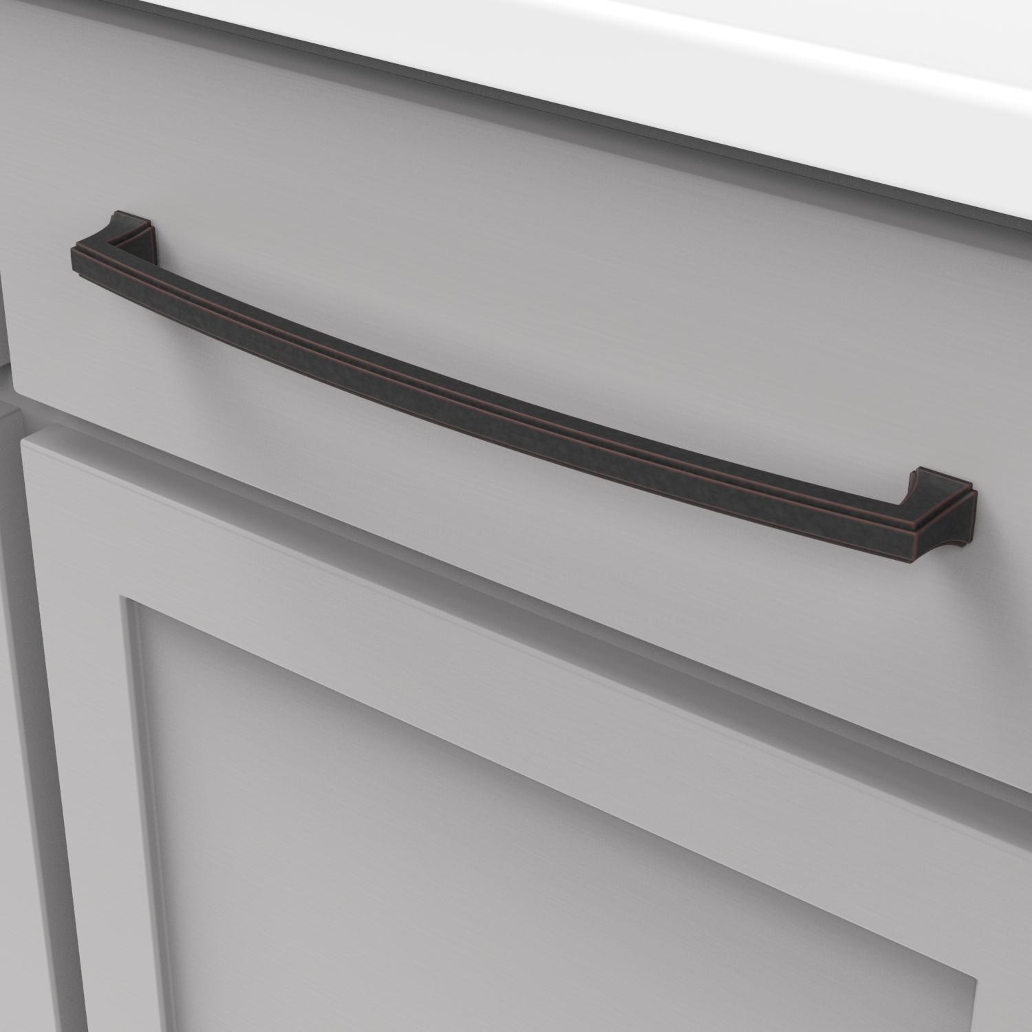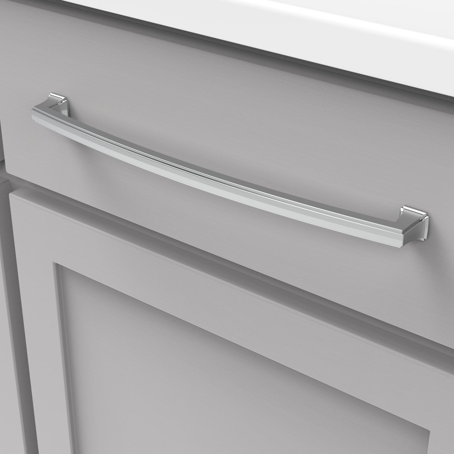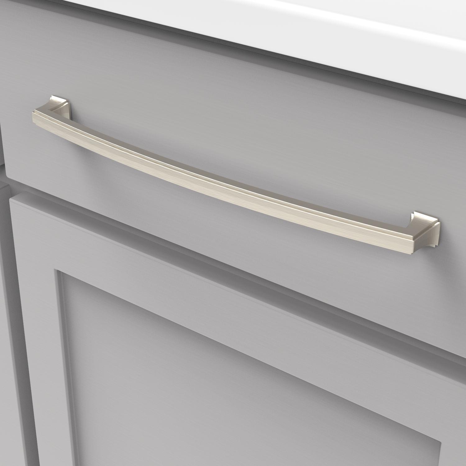- The gentle arc of the pulls gives the collection a soft elegance.