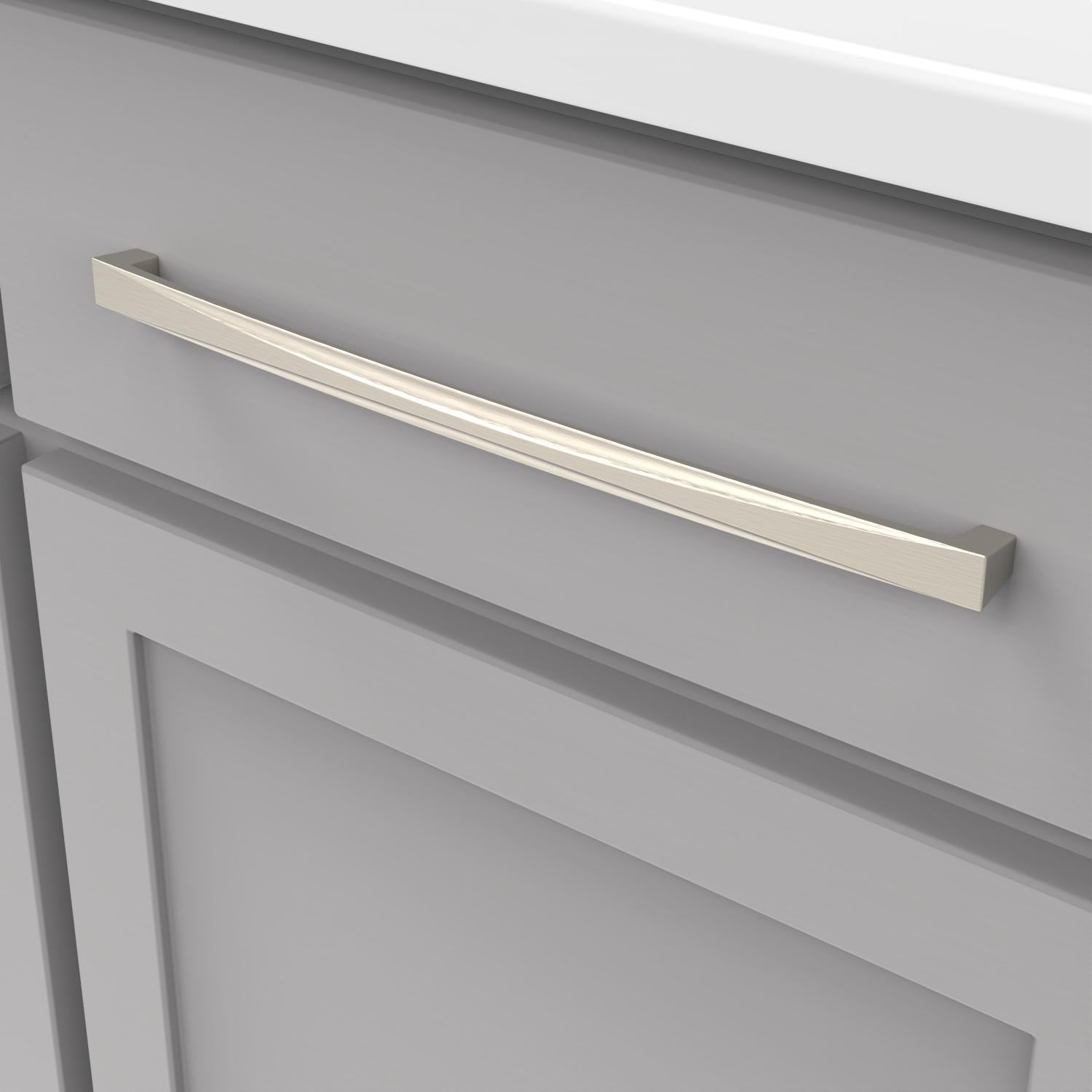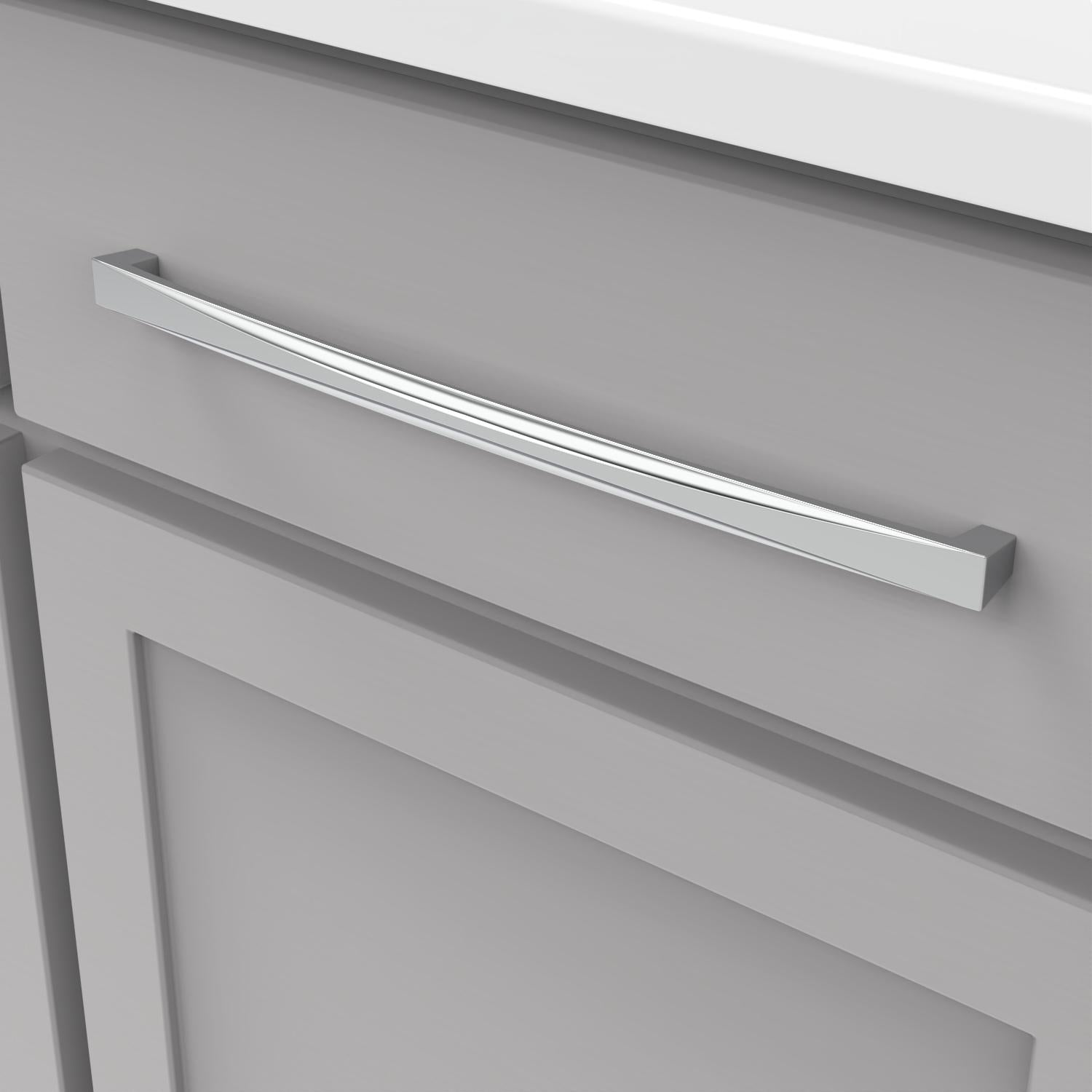 - The gentle arc of the pulls gives the collection a soft elegance.