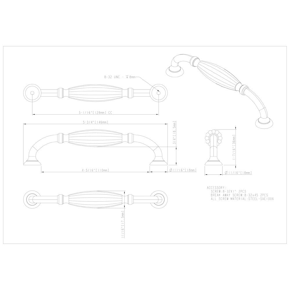 Glenmore's classic reeded design is as equally becoming as it is classy. This 5-3/4" overall length Brushed Oil Rubbed Bronze cabinet pull is also available in an appliance pull. Mix and match this Jeffrey Alexander pull with a time-honored drop pull option, or two sizes of a coordinating knob. Four age-old finishes make this collection the essential addition to any traditional or rustic kitchen. Each item is individually wrapped to protect the item from damage. Attachment hardware is included.