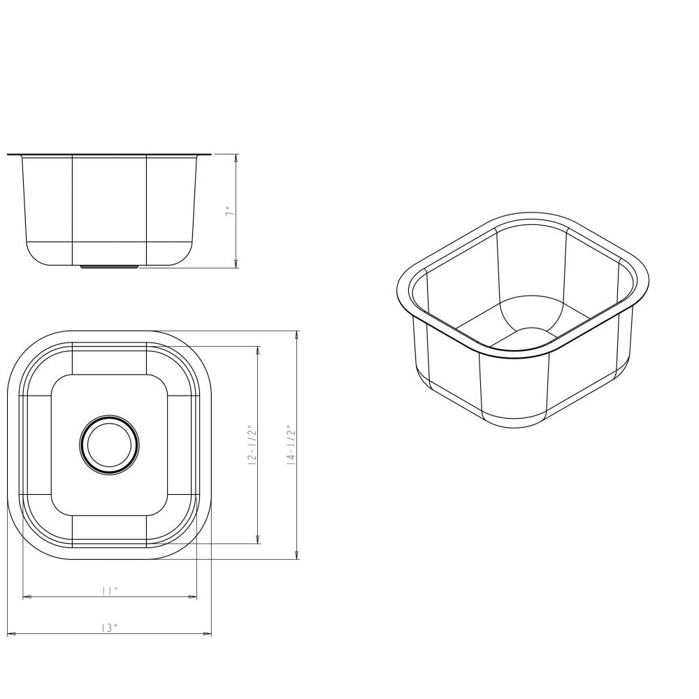 13" L x 14-1/2" W x 7" D Undermount 18 Gauge Stainless Steel Single Bowl Sink