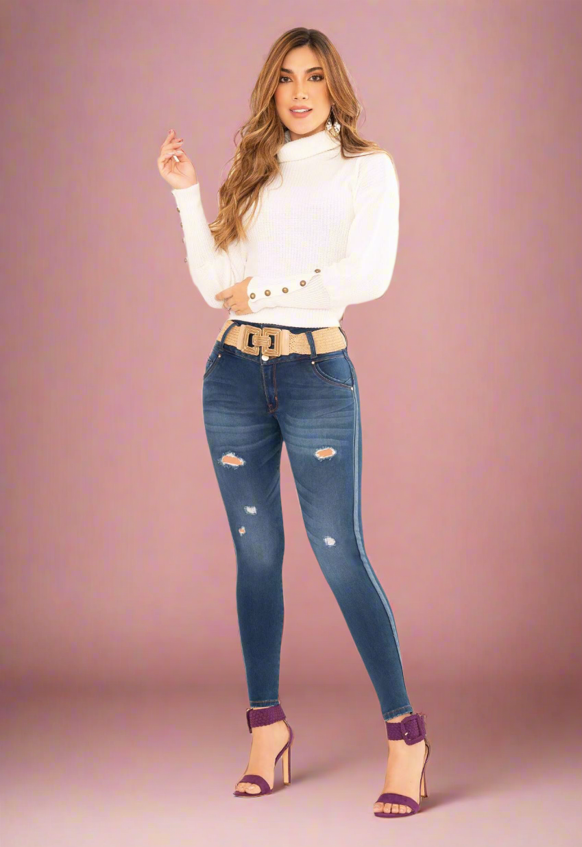 Made with a stretch denim/spandex fabric designed to comfortably give you the backside you desire.