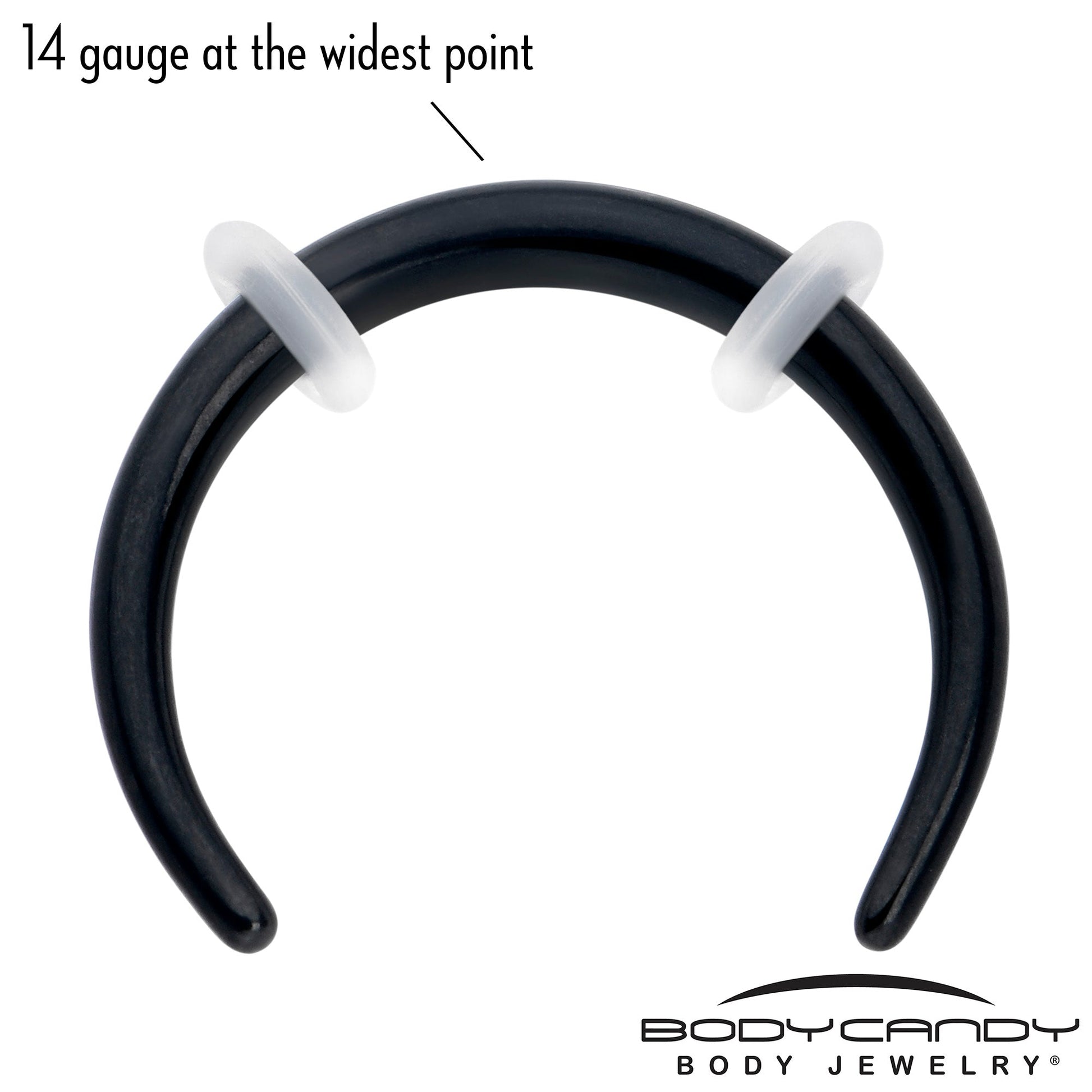 Keep it simple with this 14 gauge septum ring. It's made with a 10mm black PVD over 316L surgical grade stainless steel and features a curved taper design for comfortable insertion and removal. Whether you're stretching a piercing or just going for a new look, you can rock in multiple piercings including ear lobe, septum, and conch, and it features o-rings for secure wear. Keep it simply stylish with this classic pincher.Specifications