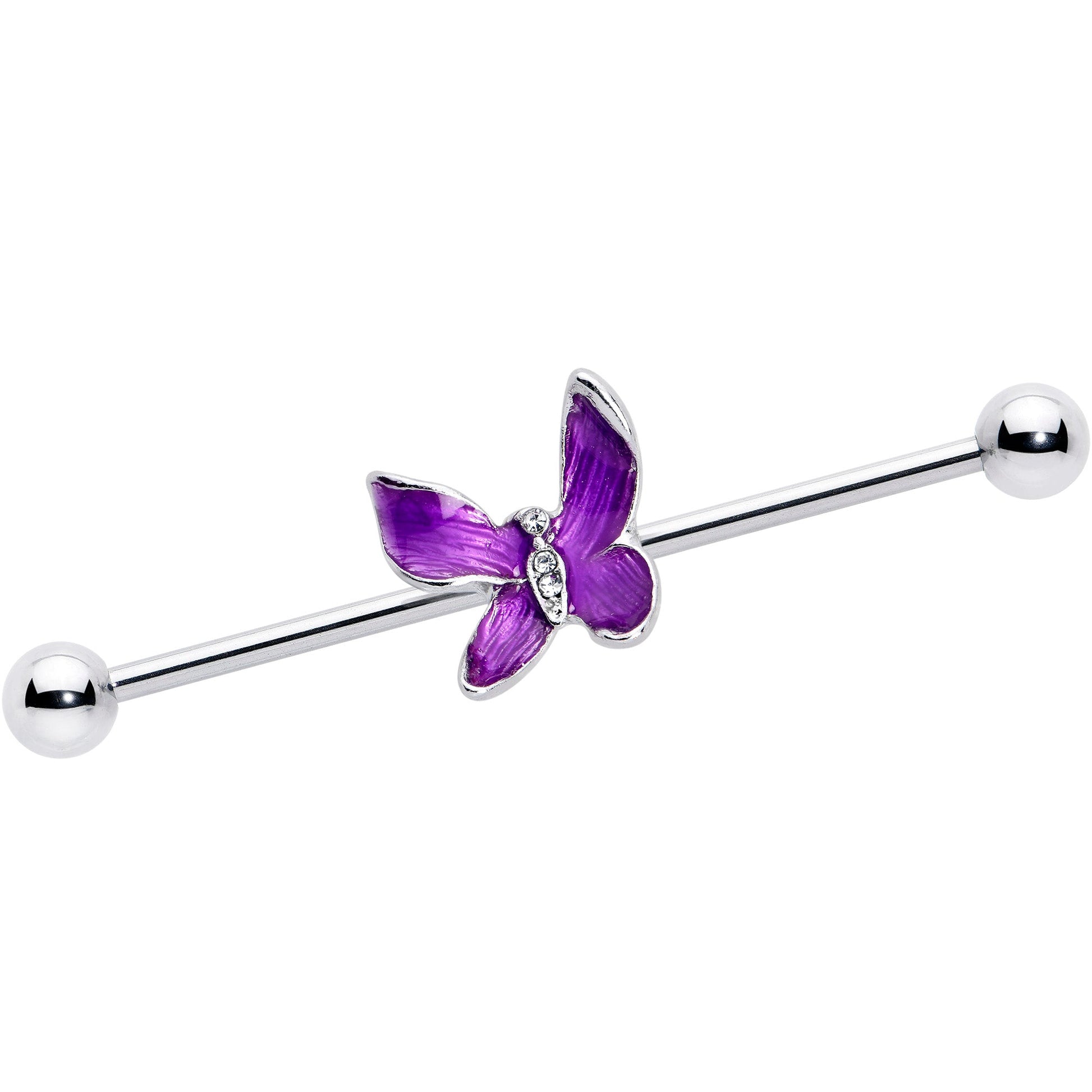 14 Gauge Clear Gem Chunky Butterfly Purple Industrial Barbell 38mm