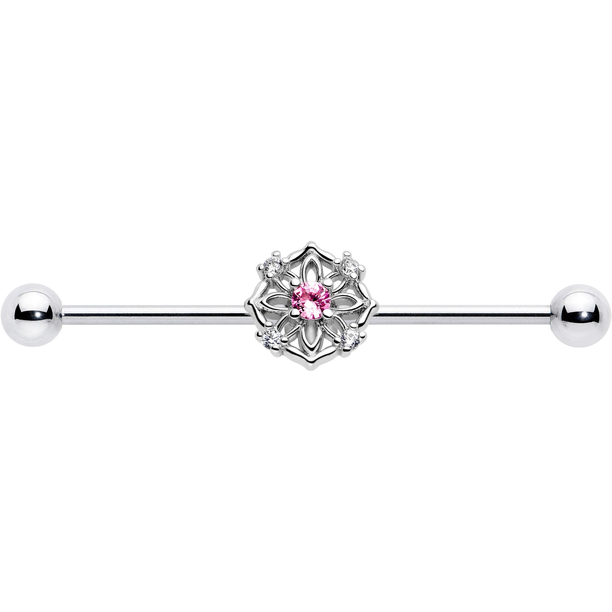 14 Gauge Pink CZ Gem Flower Circle Industrial Barbell 38mm