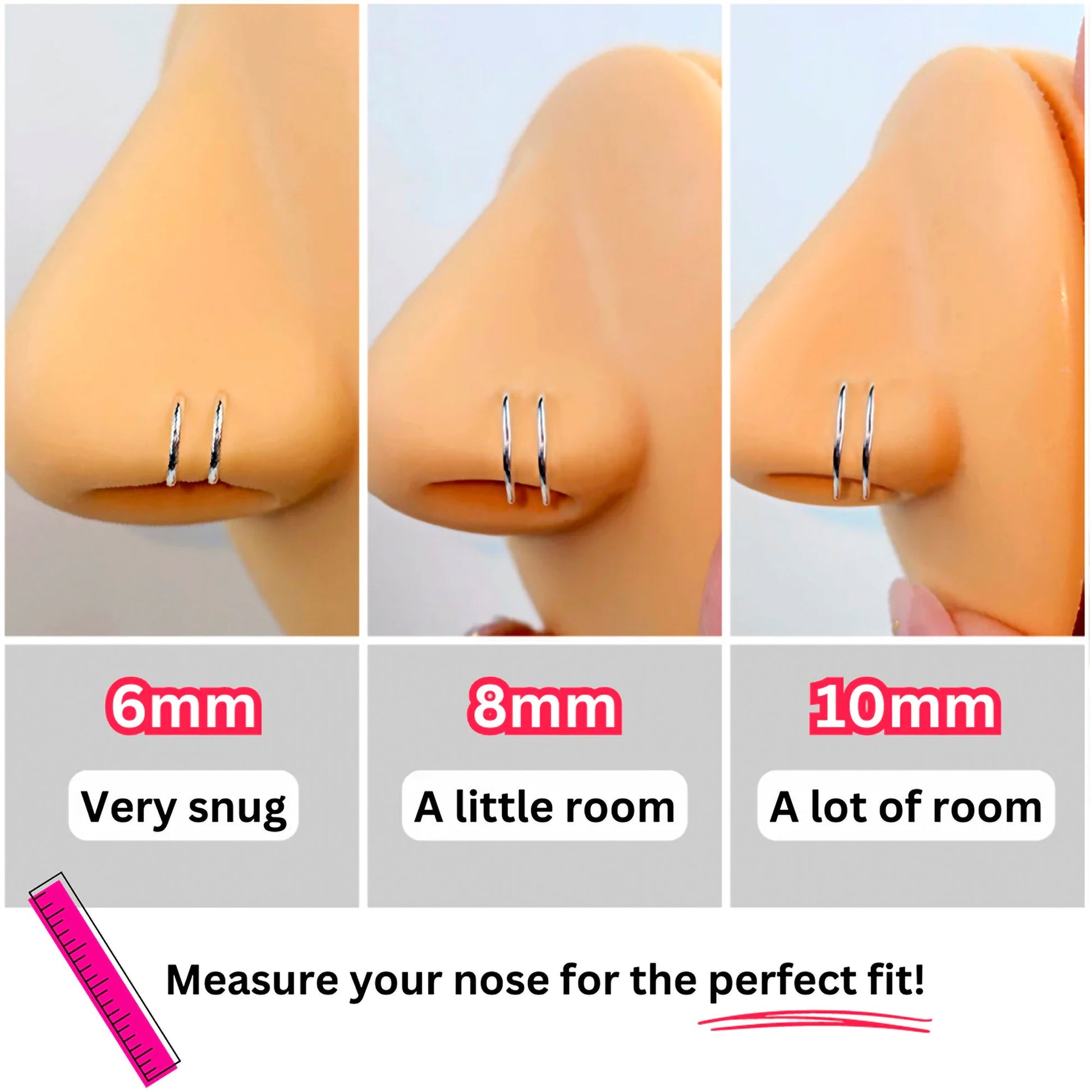 Whether you're looking for a fake double nose ring, faux double nose ring, or a double spiral nose ring, this 14k gold nose ring hoop is the perfect choice.