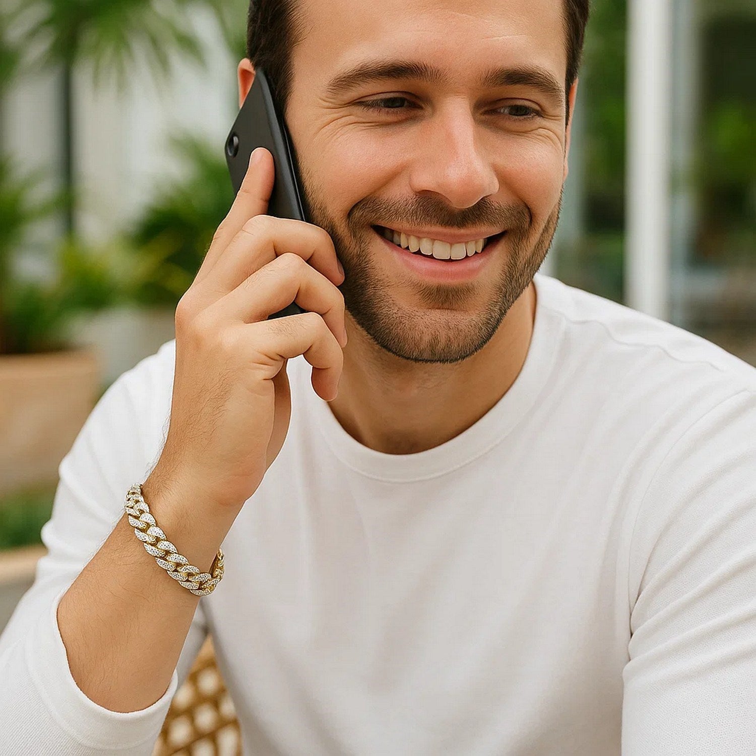 14k Two Tone Gold Curb Chain Bracelet with Diamond Pave Links (11.50 mm)