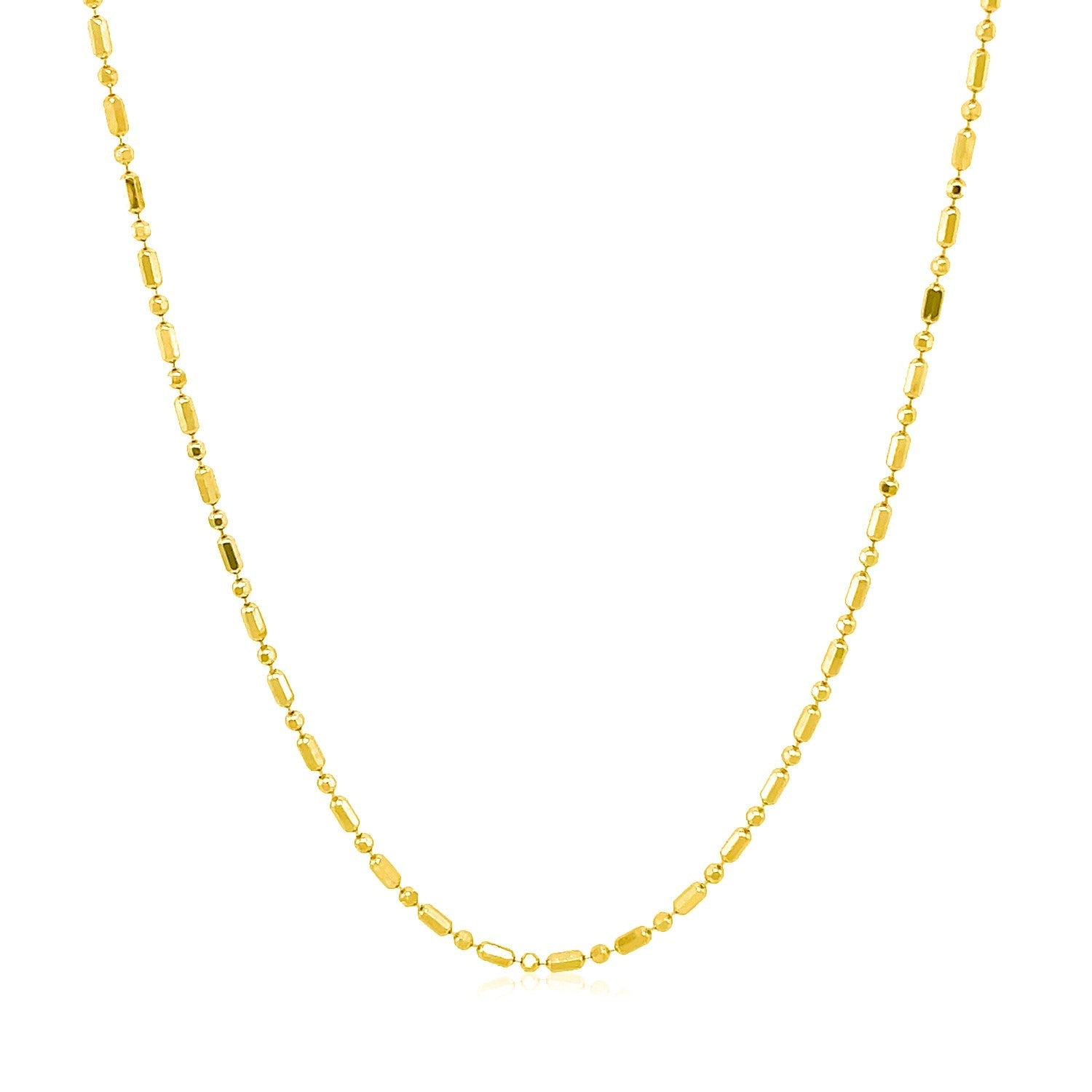 This diamond cut alternating bead chain comes in 14k yellow gold and has a width of 1.10 millimeters.