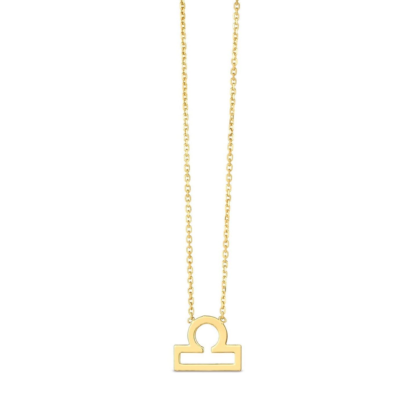 This Libra necklace is beautifully crafted in 14k yellow gold with a high polish finish & secures with a spring ring clasp. This beautiful piece is hand crafted & a perfect piece for that special libra in your life. Measuring 18 inches in length. Don't forget the matching earrings!