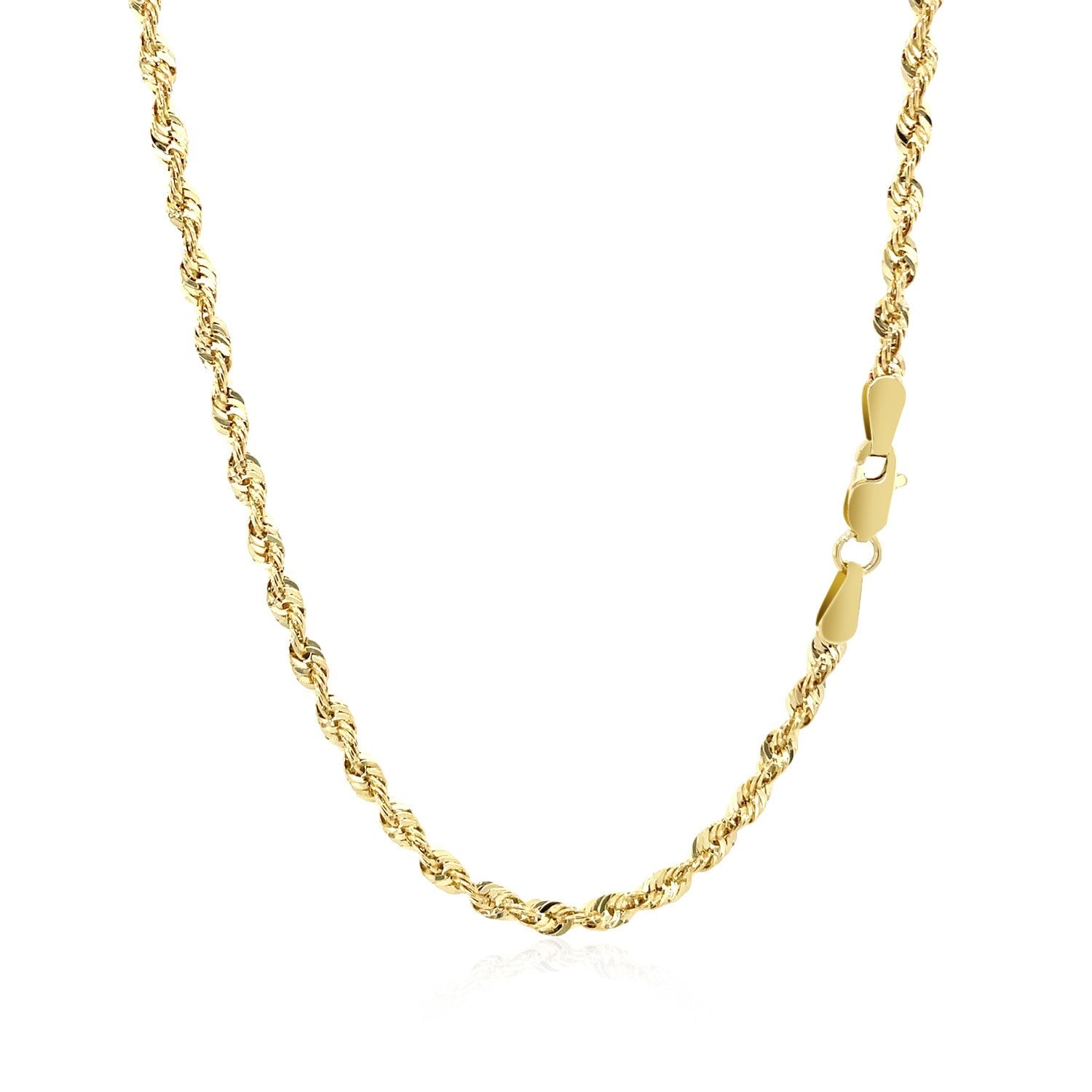 This light rope chain comes in 14k yellow gold and has a width of 2.5 millimeters.
