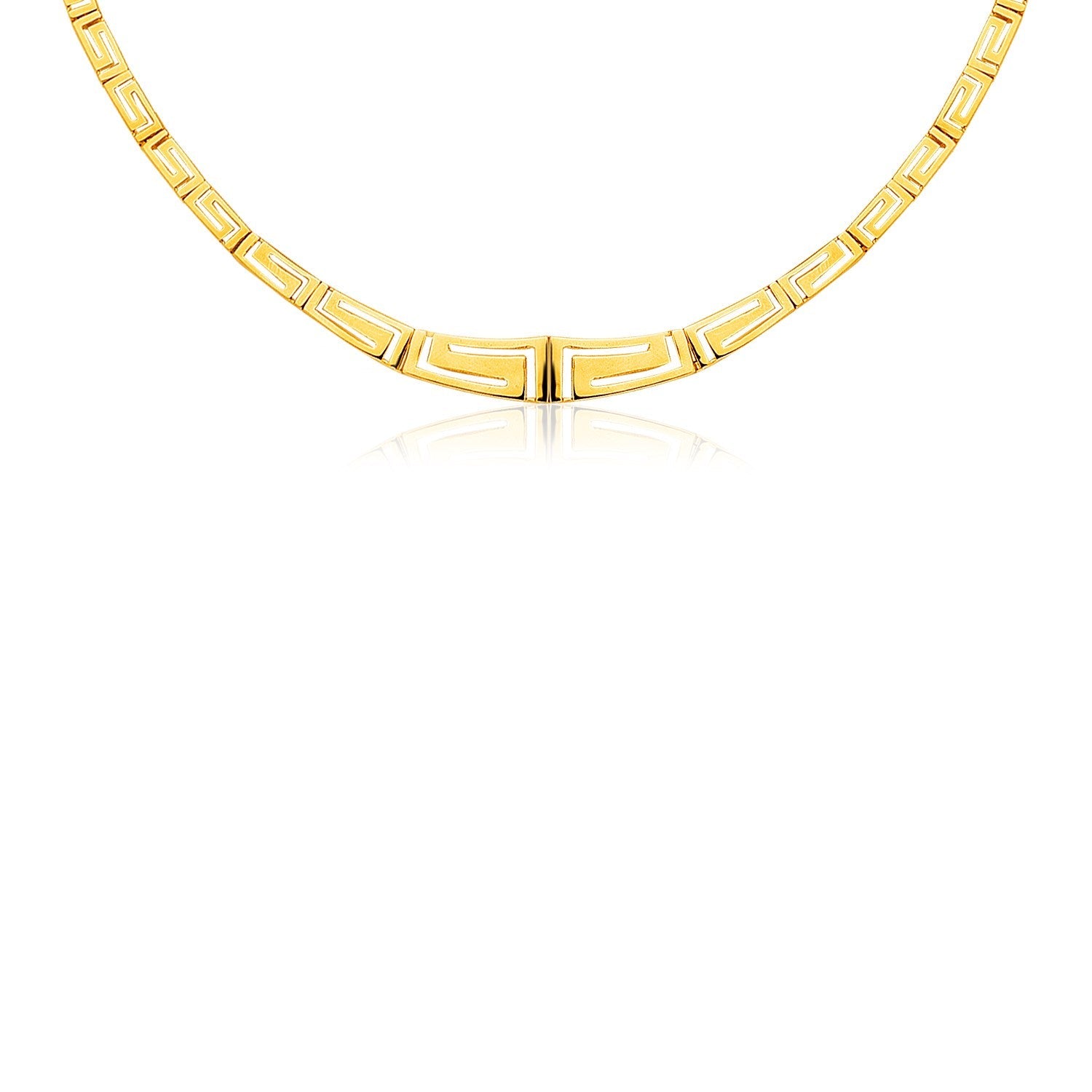 14K Yellow Gold Necklace with Graduated Greek Meander Motif Links