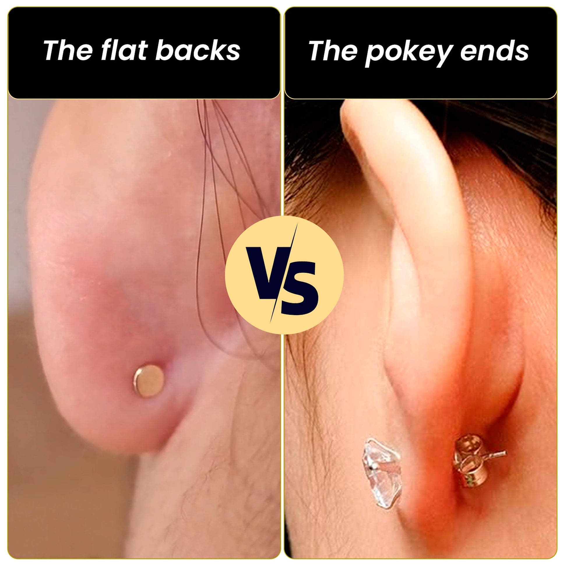 - Super Comfy Flat Backs - Designed for all day wear without poking your neck or squeezing your earlobes