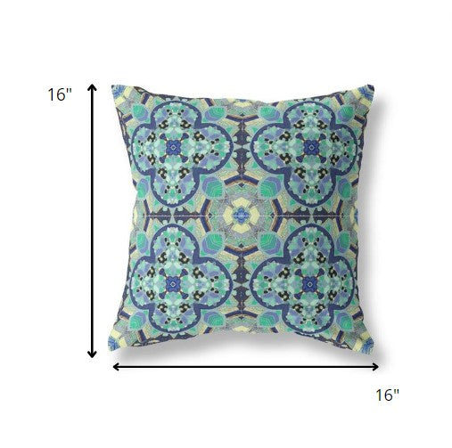 16" Aqua Indigo Cloverleaf Indoor Outdoor Throw Pillow