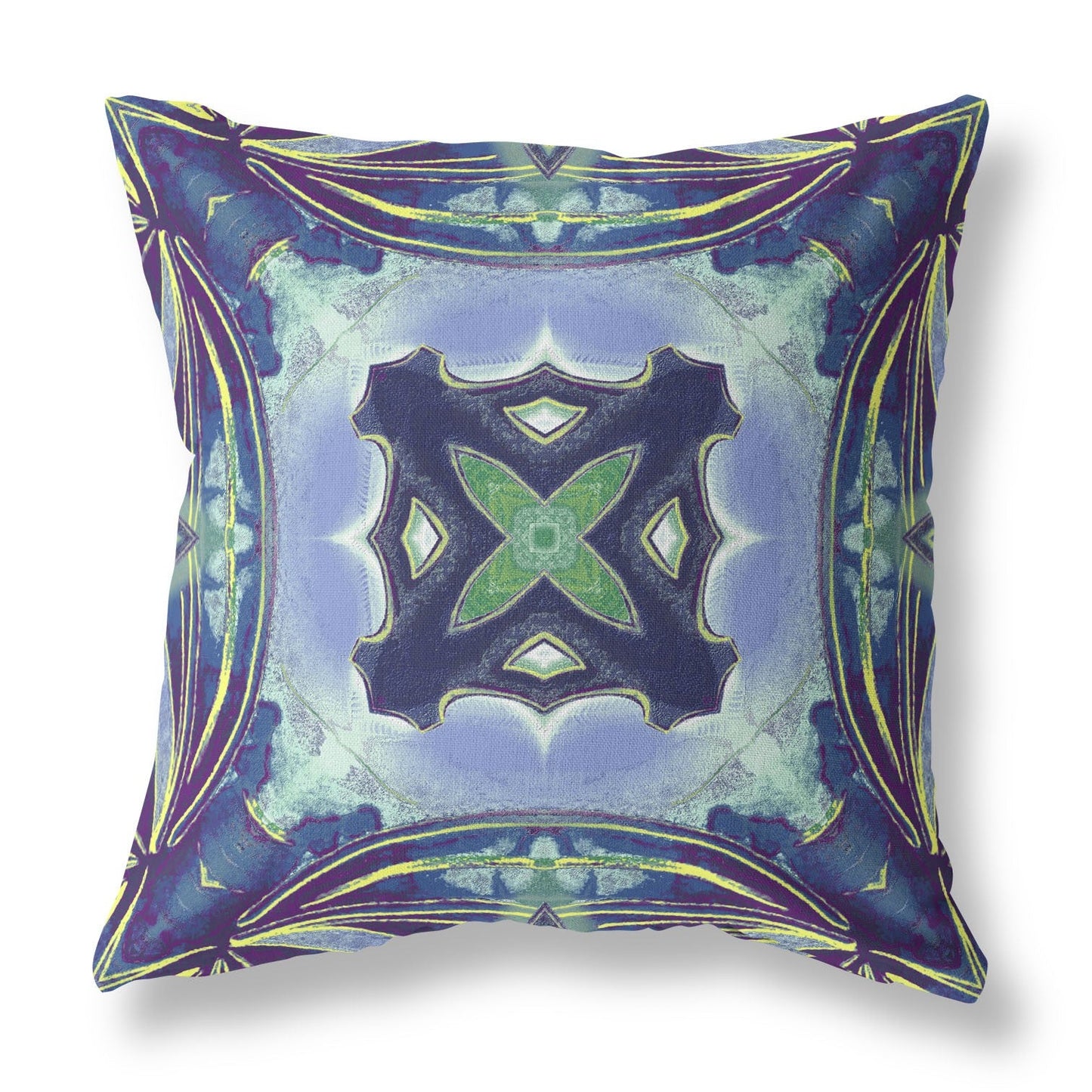16” Blue Green Geo Tribal Indoor Outdoor Throw Pillow
