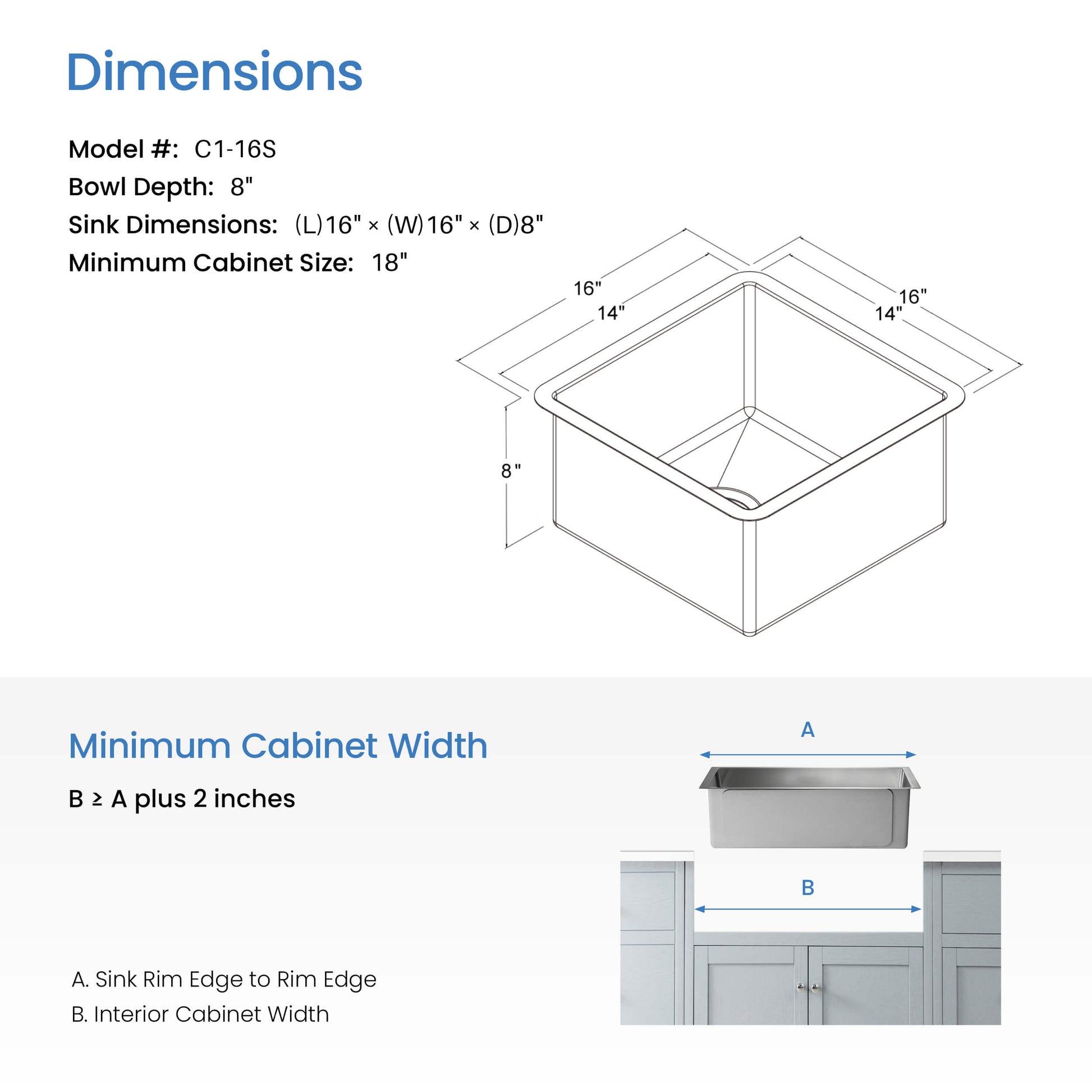 16" Handcrafted Undermount Single Bowl 16 gauge Stainless Steel Kitchen Sink