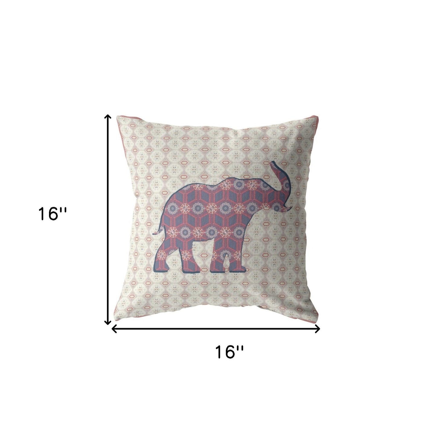 Modern and minimalist with a bohemian flair, this Magenta Elephant Indoor Outdoor Throw Pillow showcases a soothing palette with well-thought design elements to accentuate a boho-chic essence. The muted magenta elephant is packed with geometric motifs and flanked over a mauve-toned background with repeated patterns, making this pillow an ideal accent for any modern or bohemian home. Crafted from the finest broadcloth fabric to ensure durability with a soft hand, it's an ideal accent to add a luxurious look to your indoor and outdoor settings. This blown pillow is filled with a 100% polyester fiber inser, giving it a lavish springy feel with a fluffy nature to provide utmost comfort. Embracing traditional patterns in modern hues, this pillow is sure to create a calm and relaxing atmosphere in your living room. 16” x 16” x 5”