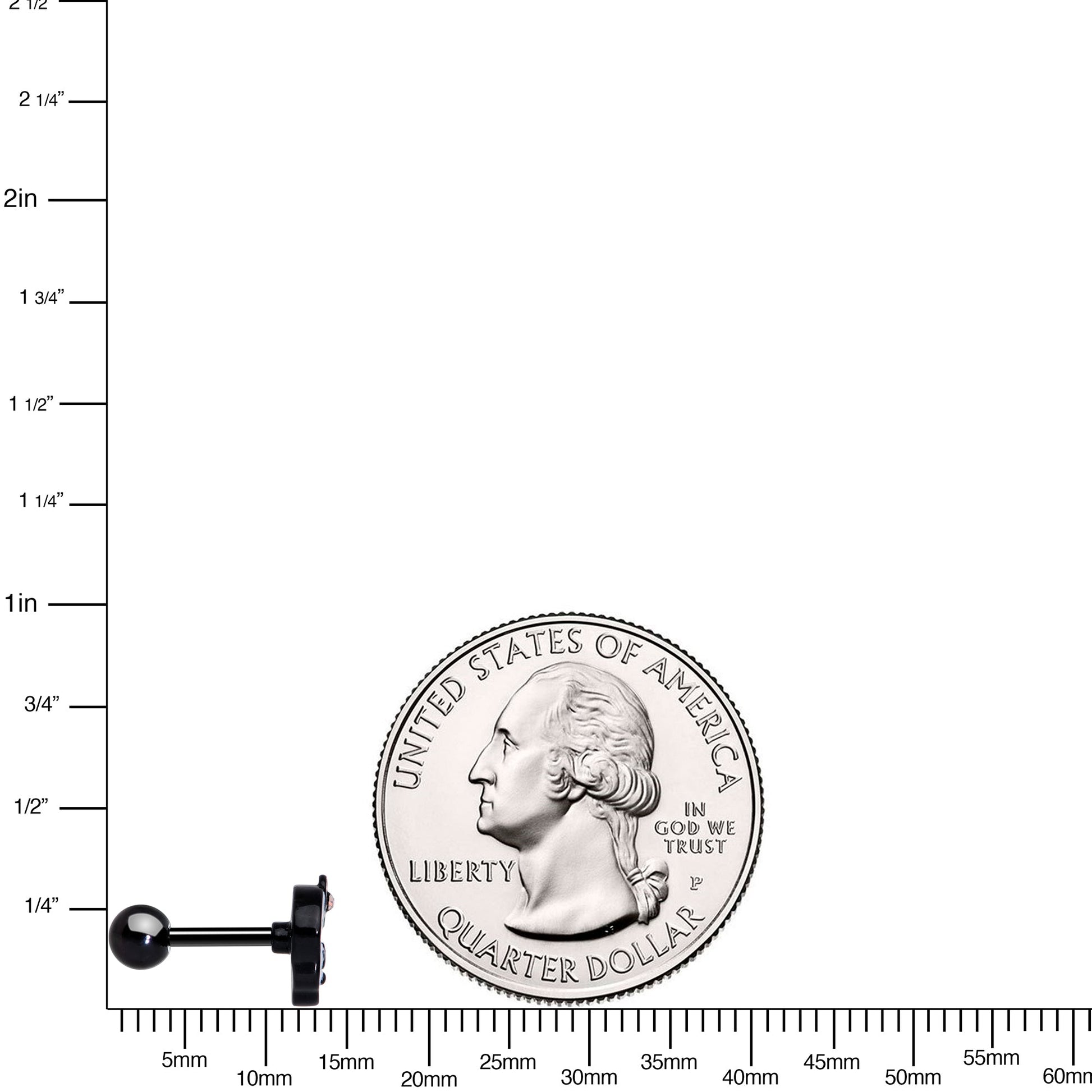 The skull on this 16 gauge tragus stud is a total sweetie. It's made with a 6mm black plated over 316L surgical grade stainless steel straight barbell with a 4mm ball end. It features a white skull charm with black features, including endearingly oversized eyelashes. The skull is further embellished with a pink bow, set with an aurora gem and you can even rock it in multiple piercings including tragus, helix, and some conch piercings. Take your look from alarming to adorable with this cute and captivating skull cartilage piercing jewelry.Specifications
