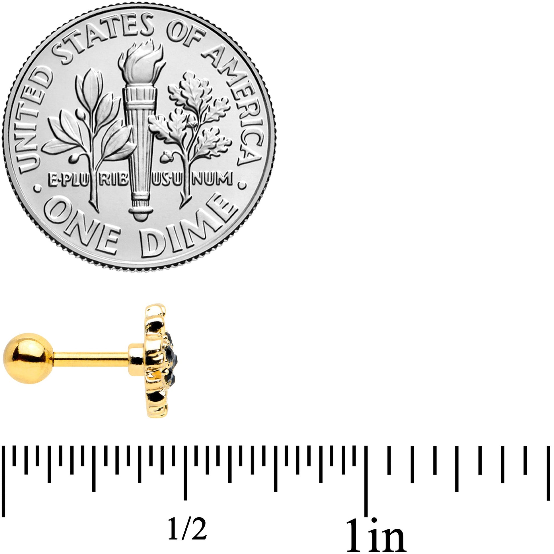16 Gauge 1/4 Black CZ Gem Gold Tone Beehive Cartilage Earring Set of 3