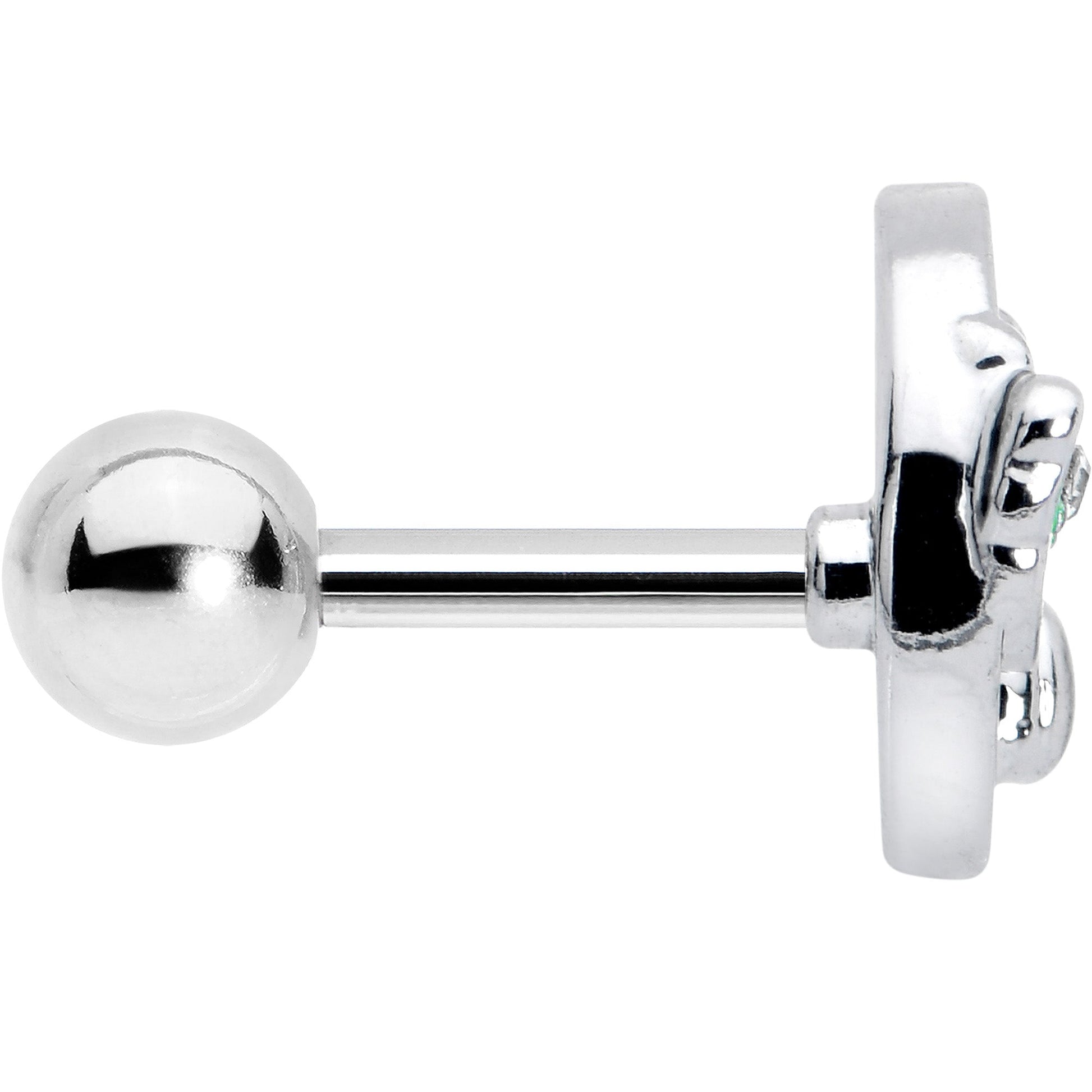 16G 1/4 Clear CZ Gem Rabbit on the Moon Green Cartilage Earring