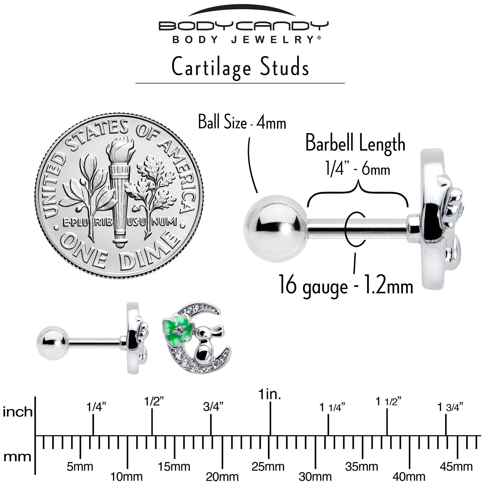 16 Gauge 1/4 Clear CZ Gem Rabbit on the Moon Green Cartilage Earring