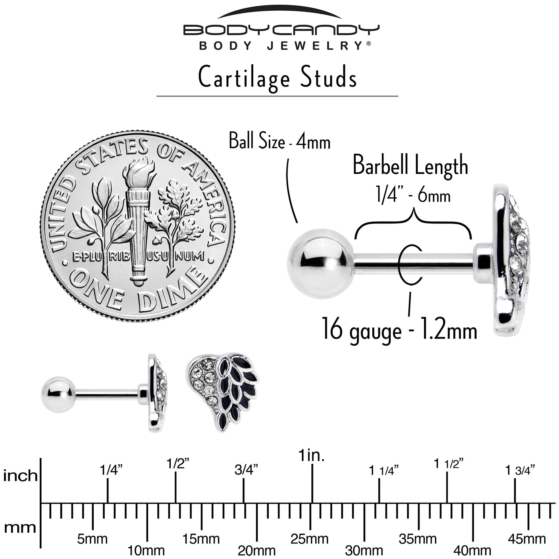 16 Gauge 1/4 Clear Gem Heavenly Heart Angel Wing Black Cartilage Earring