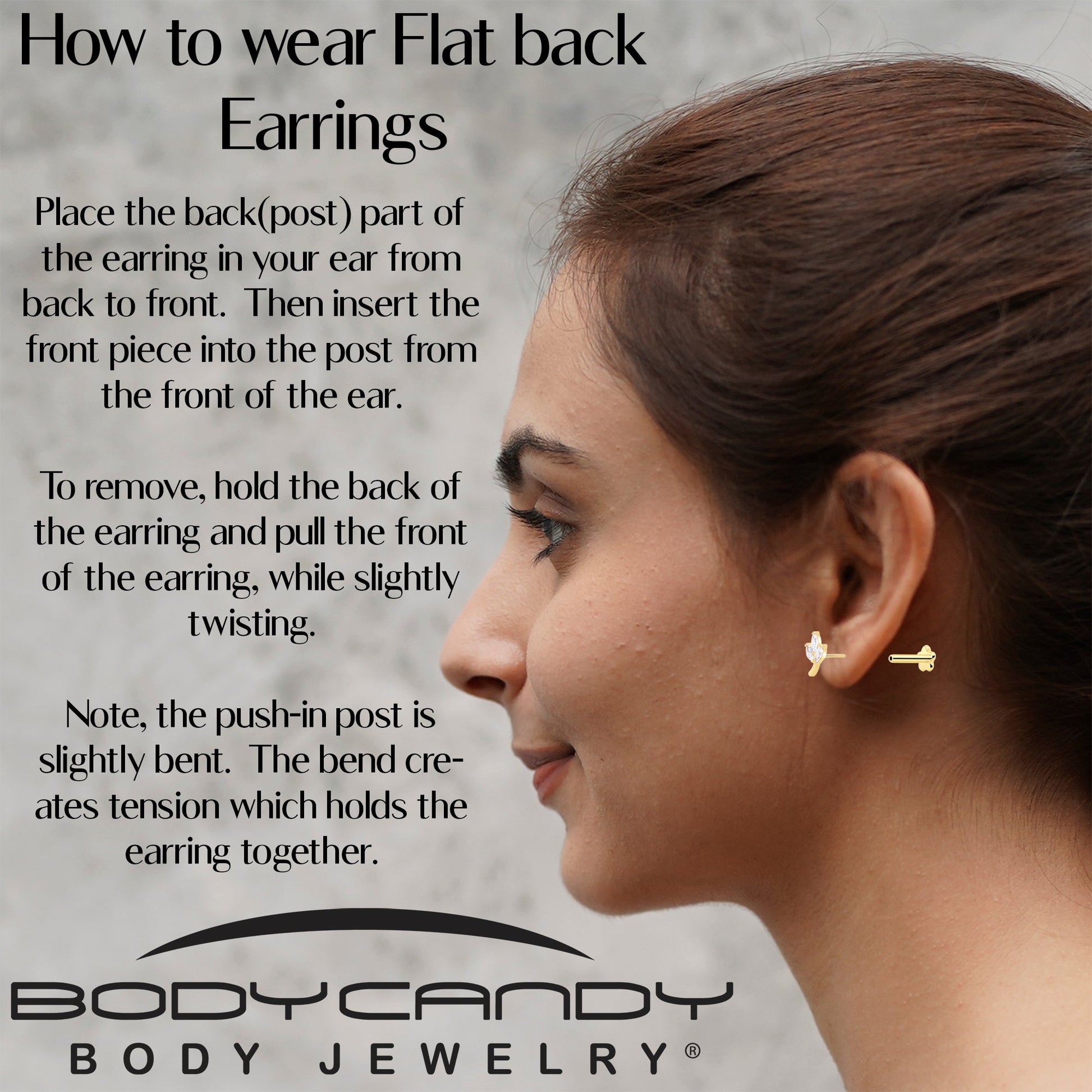 Hypoallergenic Flat Back Earring16 Gauge 1/4 CZ Gem Leaves Gold PVD Implant Grade Titanium Push In Threadless Reversible Stud Earring