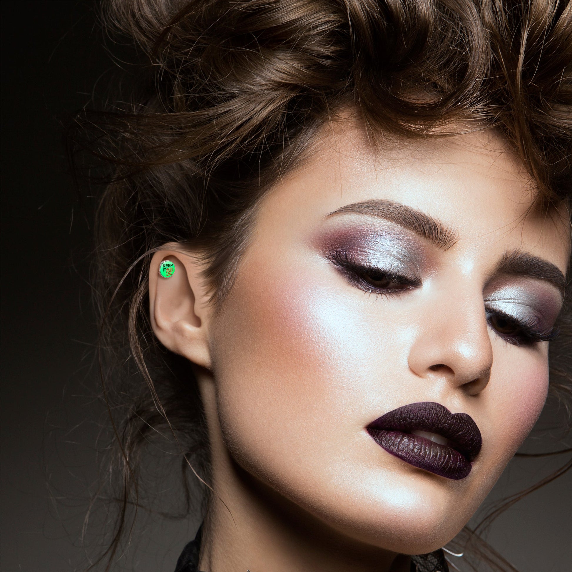 If you want everything maxed out, even with the lights out, get ready to rock this 16 gauge tragus stud. It's made with a 6mm durable 316L surgical grade stainless steel straight barbell with a 4mm ball end. It features a white disc logo charm that says Keep It 100 with red embellishment and emoji styling. Even better, when the lights go down it glows in the dark and you can even rock it in multiple piercings including tragus, helix, and some conch piercings. You'll be keeping it 100 no matter the time of day with this glow in the dark cartilage piercing jewelry.