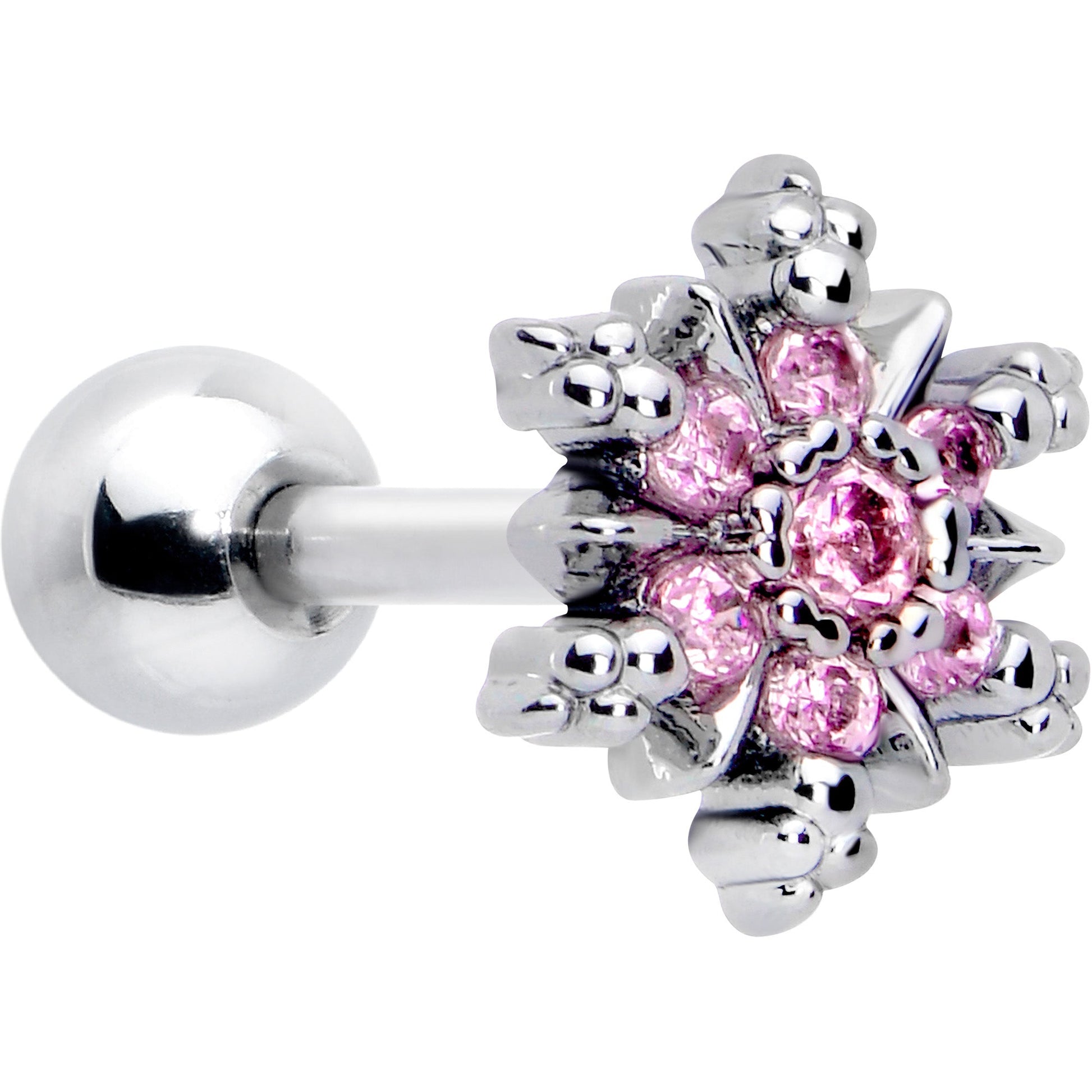 16G 1/4 Pink CZ Gem Glam Snowflake Cartilage Tragus Earring