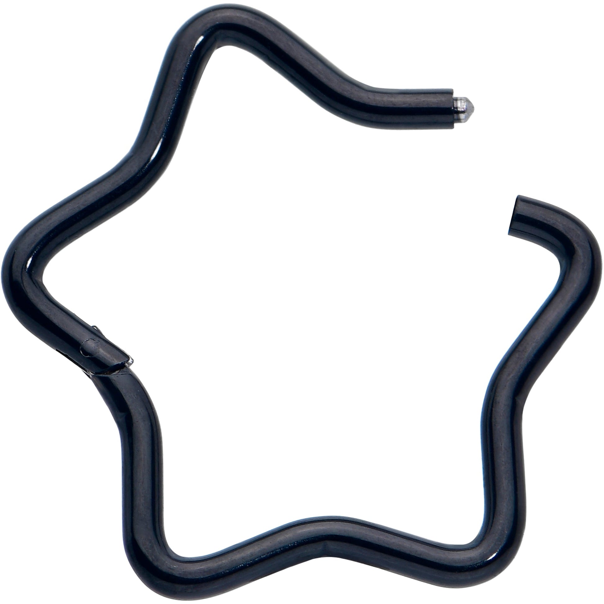 16G 3/8 Black Five Pointed Star Shaped Hinged Segment Ring