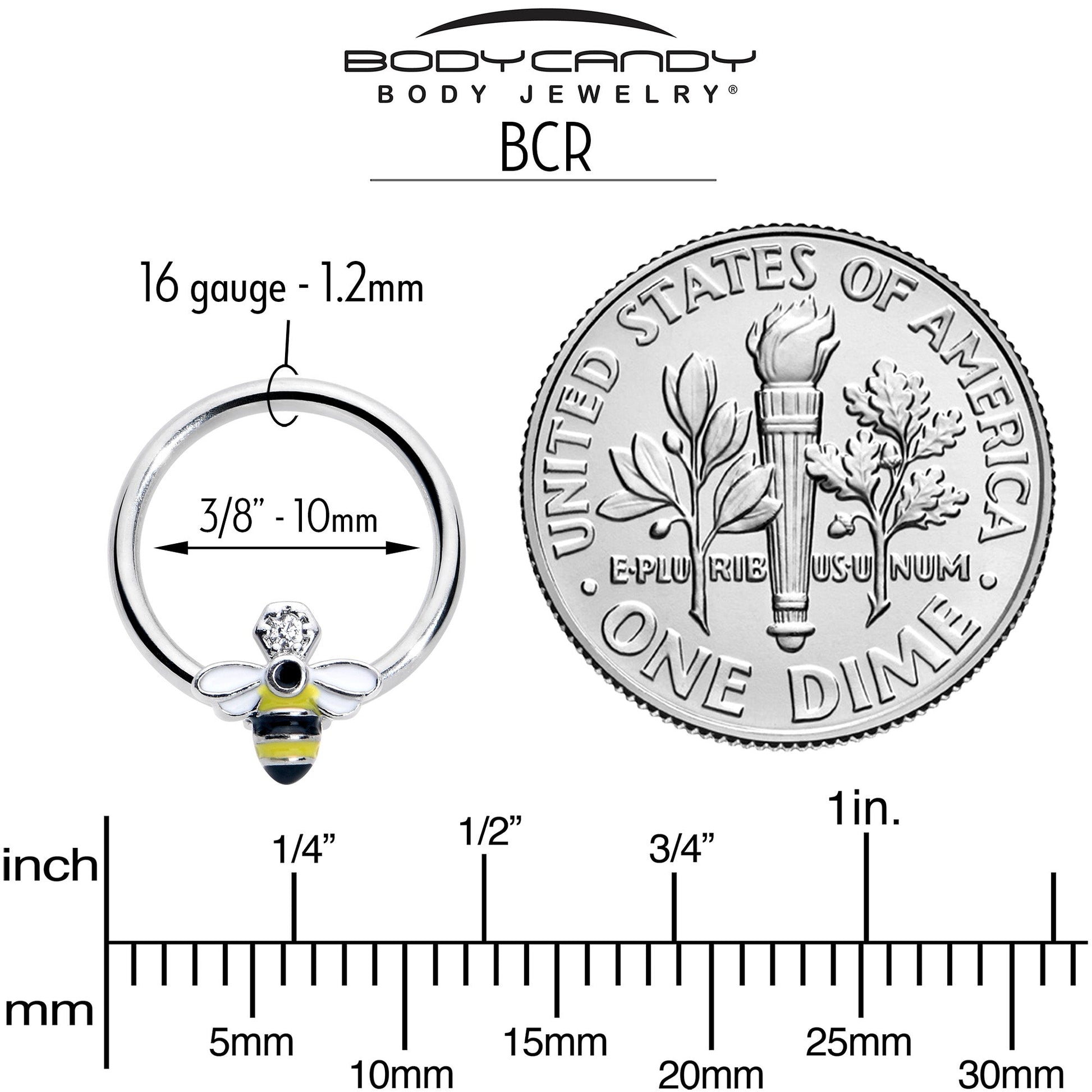 16 Gauge 3/8 Clear CZ Gem Bee Sweet BCR Captive Ring