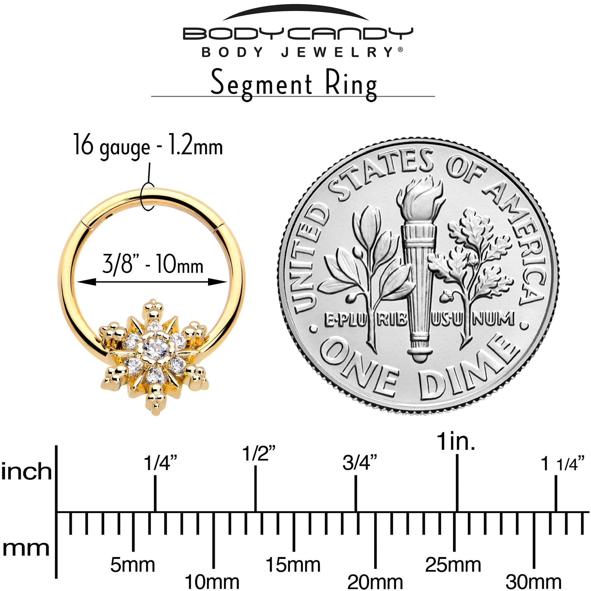 16G 3/8 Clear CZ Gem Gold Tone Glam Snowflake Hinged Segment Ring