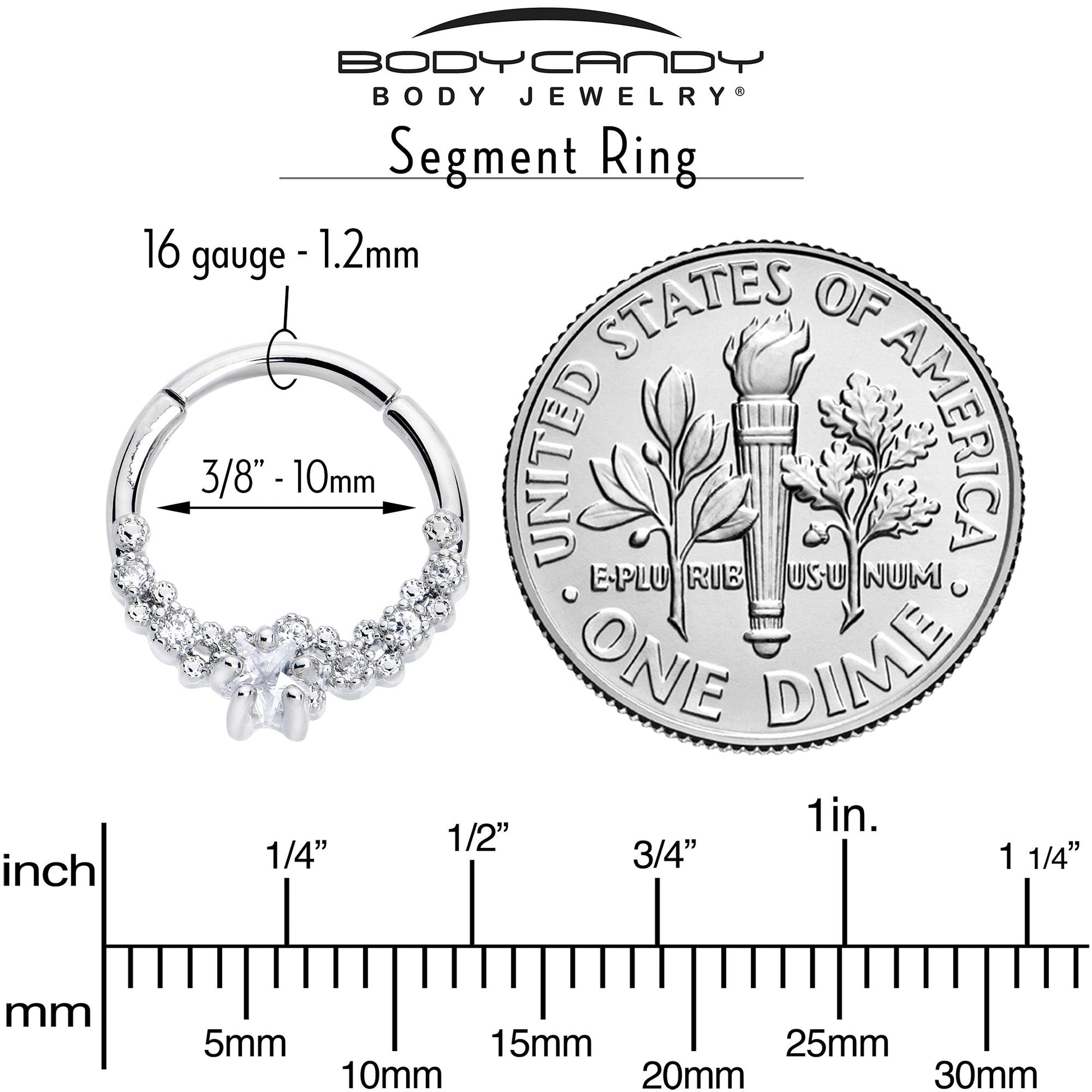 16 Gauge 3/8 Clear CZ Gem Starfish Supreme Hinged Segment Ring