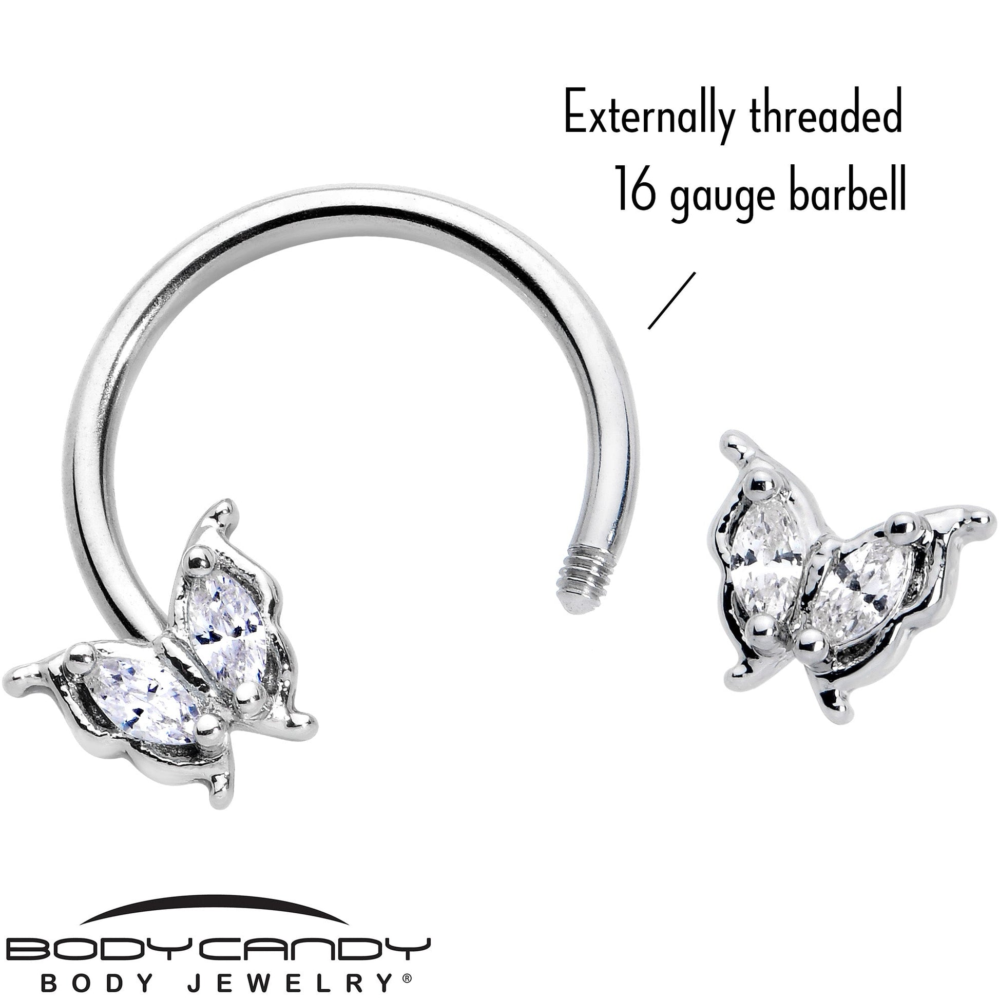 16G 3/8 Clear Gem Fancy Fab Butterfly Horseshoe Circular Barbell