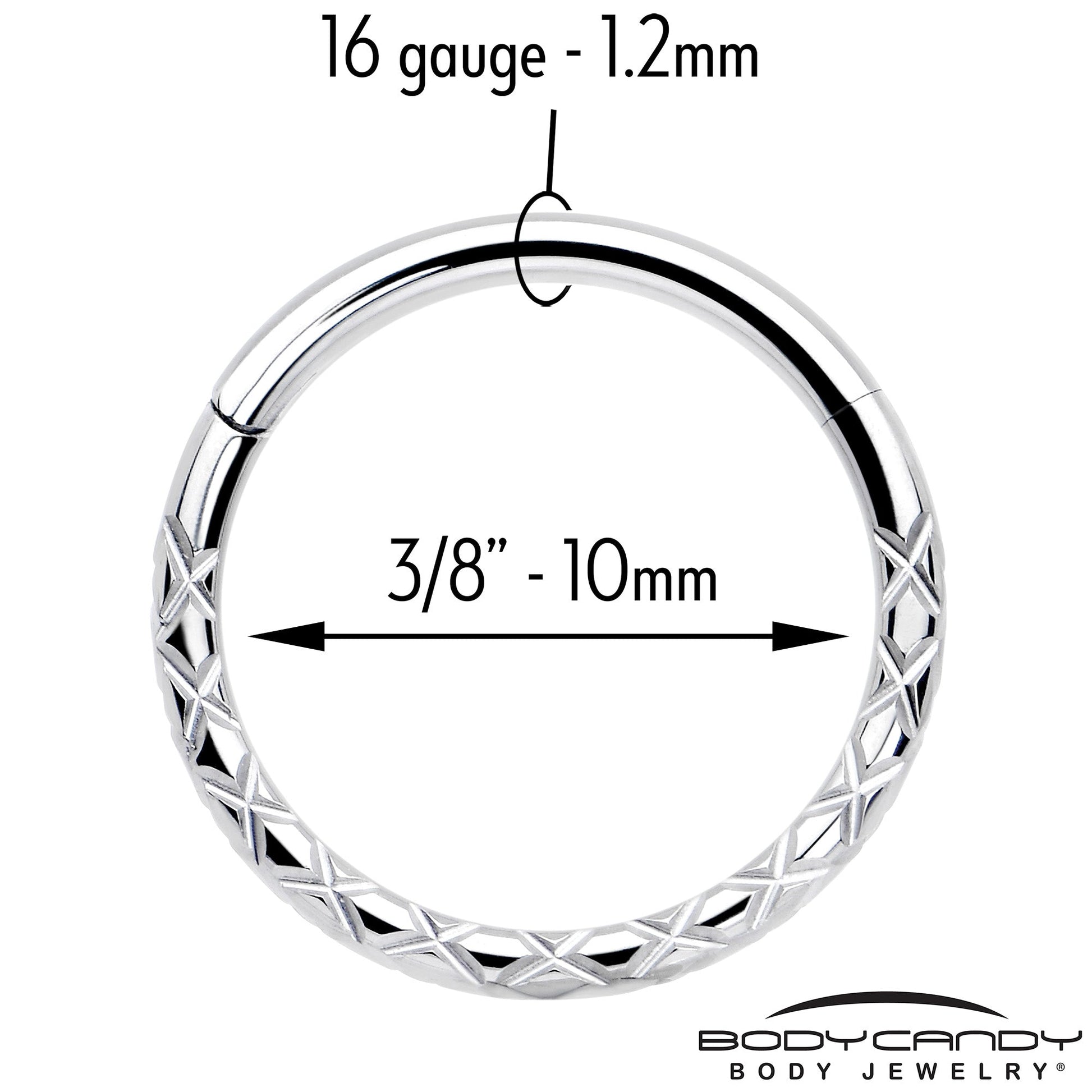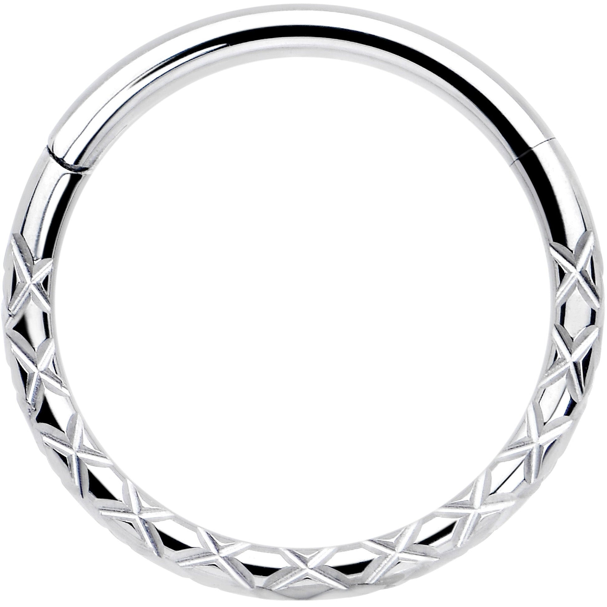 Simple style, a simple look, it's simply fantastic when you're rocking this 16 gauge septum ring. It's made with a 10mm ASTM F-136 titanium hinged circular ring. It features a snakeskin-inspired appearance for classic glamour and it also features a non-removable, hinged segment that makes insertion and removal a breeze. Hinged segment ring piercing jewelry provides a seamless look and you can rock it in multiple piercings including tragus, helix, and some daith piercings. If you need jewelry, the answer is simple with this classically styled cartilage piercing jewelry.