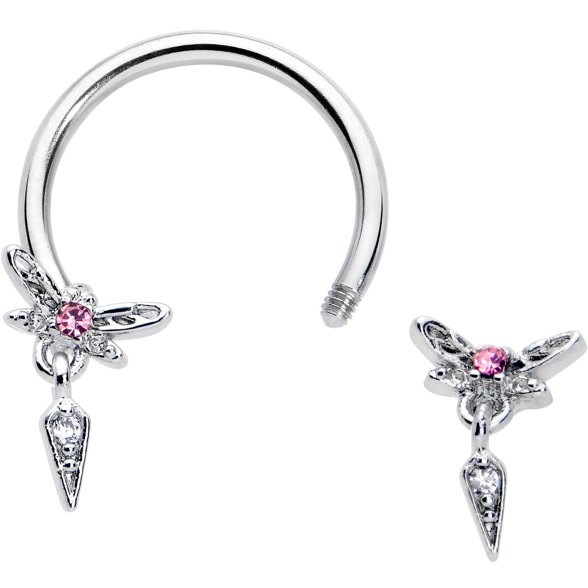 16G 3/8 Pink Gem Swank Dragonfly Dangle Horseshoe Circular Barbell