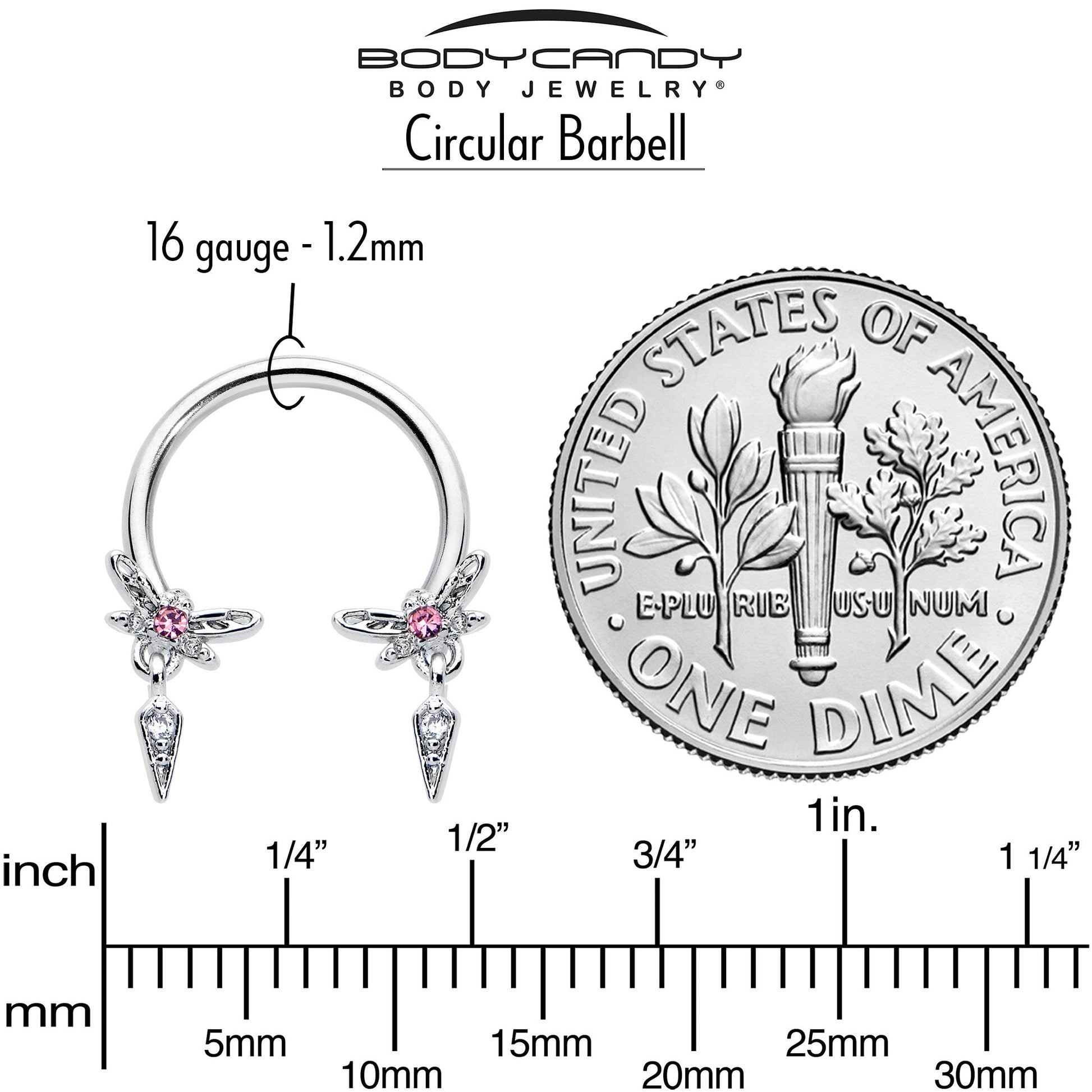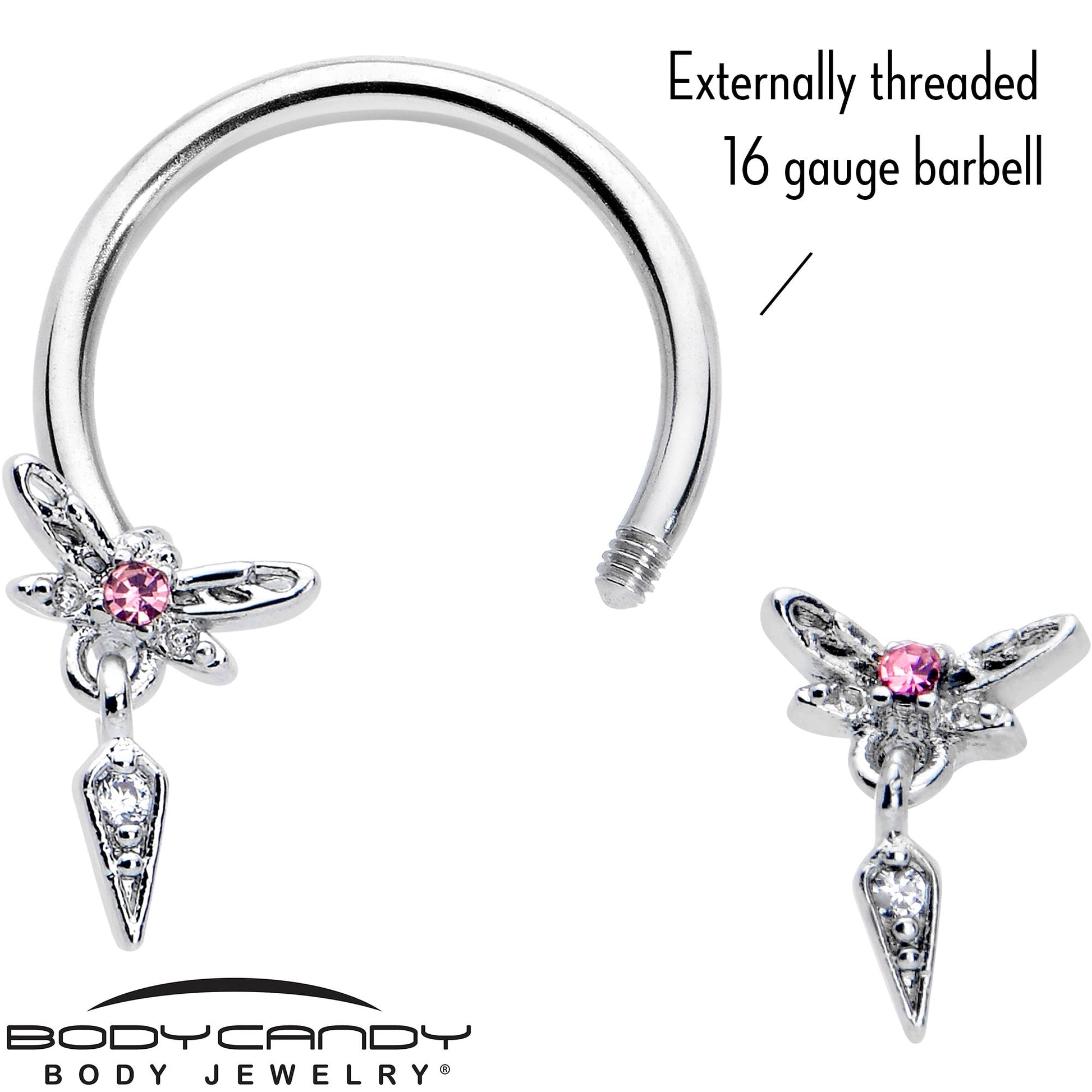 16 Gauge 3/8 Pink Gem Swank Dragonfly Dangle Horseshoe Circular Barbell