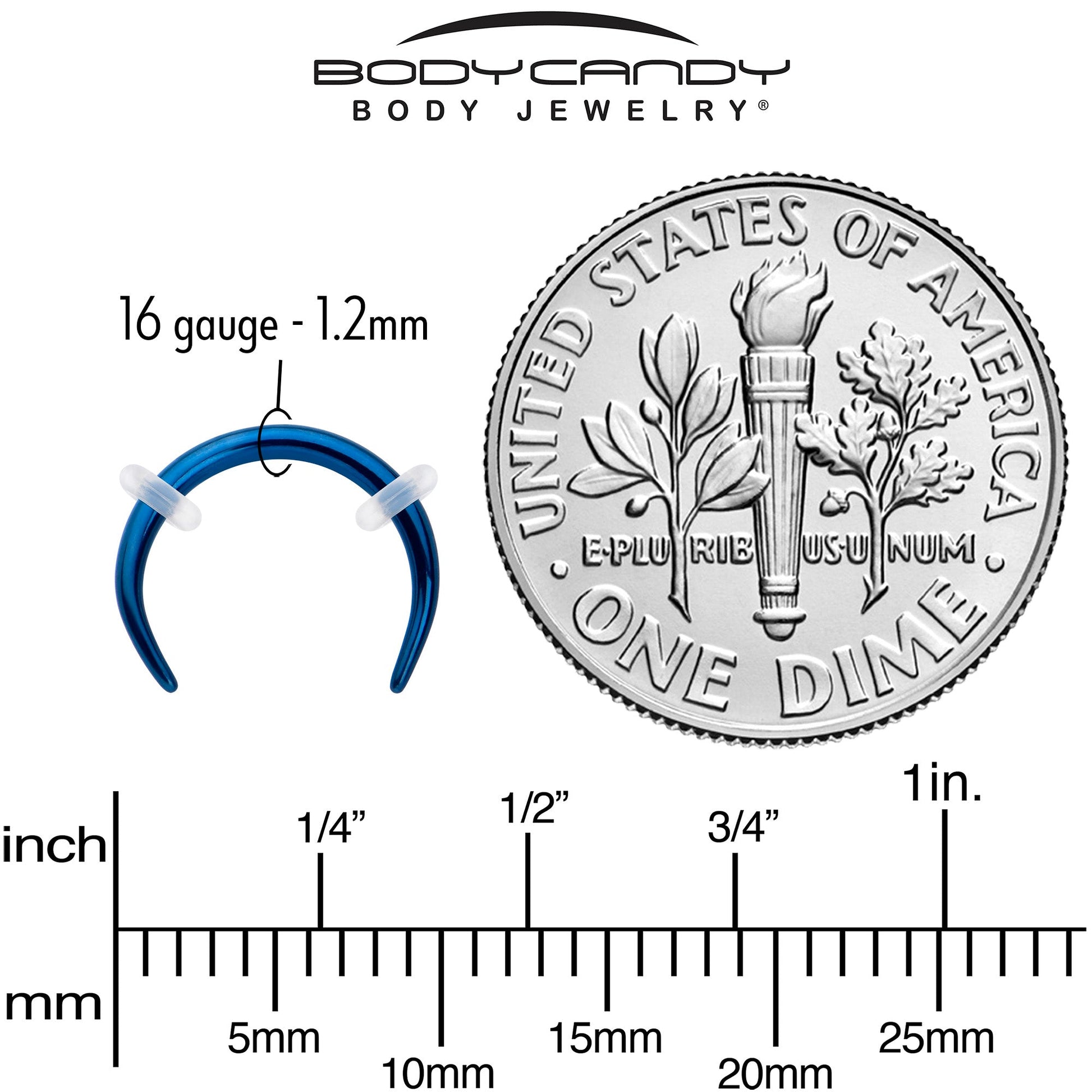 Keep it simple with this 16 gauge septum ring. It's made with an 8mm blue PVD over 316L surgical grade stainless steel and features a curved taper design for comfortable insertion and removal. Whether you're stretching a piercing or just going for a new look, you can rock in multiple piercings including ear lobe, septum, and conch, and it features o-rings for secure wear. Keep it simply stylish with this classic pincher.Specifications