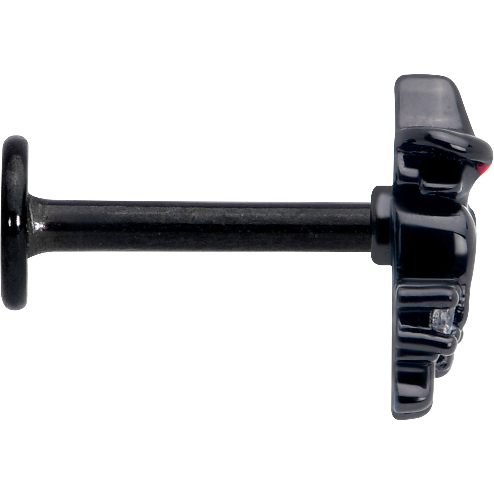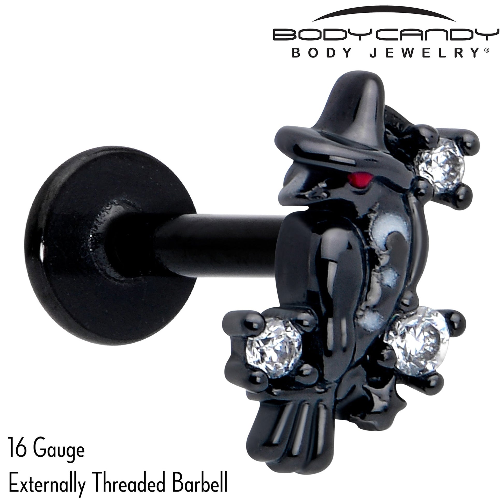 Nevermore will you be searching for the right look when you're rocking this 16 gauge lip ring. It's made with an 8mm black PVD over 316L surgical grade stainless steel straight post with a flat disc end. It features a charm of a black raven, wearing a witch's hat. It's embellished with clear cubic zirconia gems for striking contrast and you can rock it in multiple piercings including lip, momroe, tragus, helix, and some conch piercings. Make magic and rule the skies with this gorgeously gothic cartilage piercing jewelry.Specifications