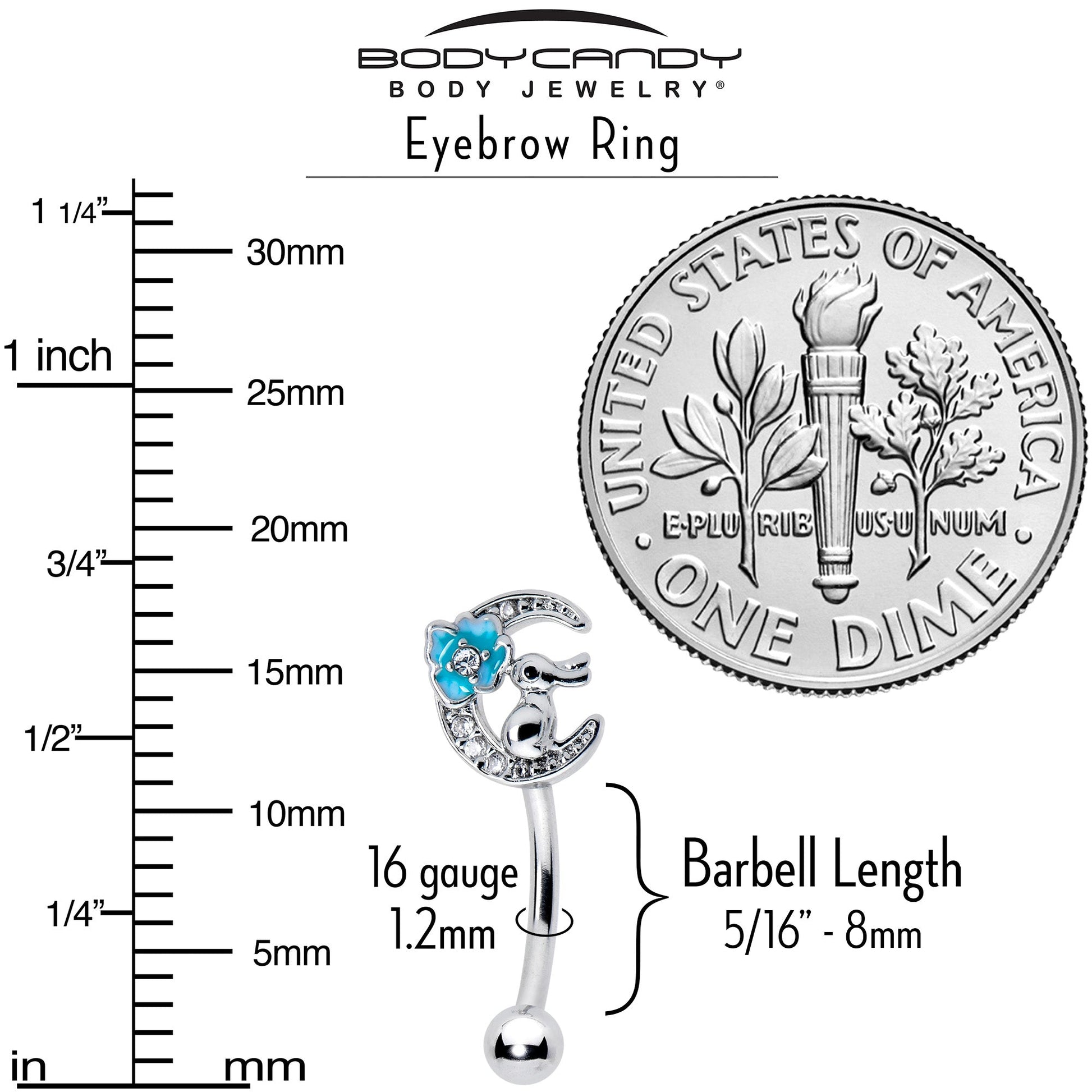 16 Gauge 5/16 Clear CZ Gem Rabbit On The Moon Blue Curved Eyebrow Ring
