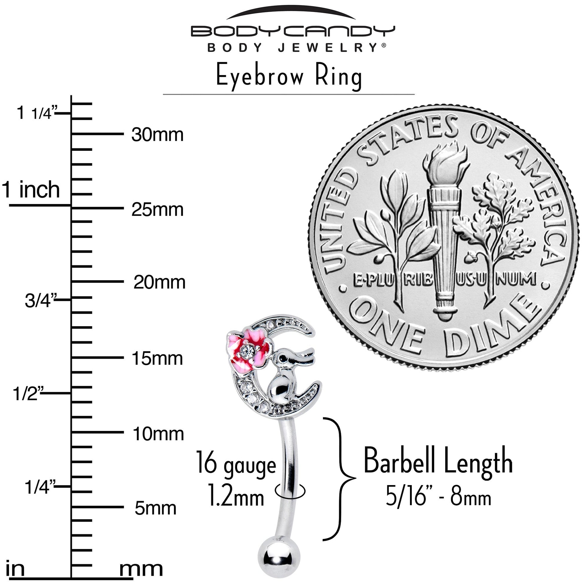 16 Gauge 5/16 Clear CZ Gem Rabbit On The Moon Pink Curved Eyebrow Ring