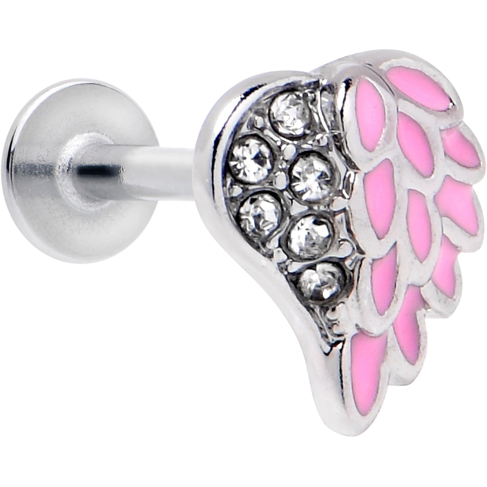 16G 5/16 Clear Gem Heavenly Heart Angel Wing Pink Labret Tragus