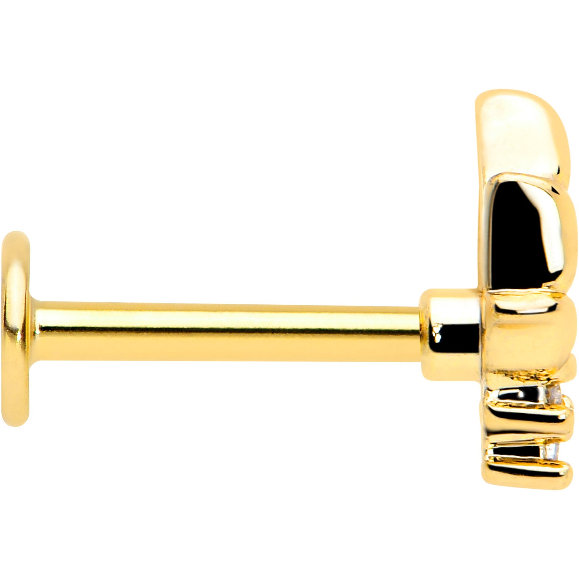 Light a fire of fashion with this 16 gauge lip ring. It's made with an 8mm gold tone PVD over 316L surgical grade stainless steel straight post with a flat disc end. It features a flame charm with the bottom embellished with clear cubic zirconia gems. The flame's center is set with a pink cubic zirconia gem for huge color impact and you can rock it in multiple piercings including lip, monroe, tragus, helix, and some conch piercings. You'll be burning with glamour when you're rocking this elegant cartilage piercing jewelry.Specifications